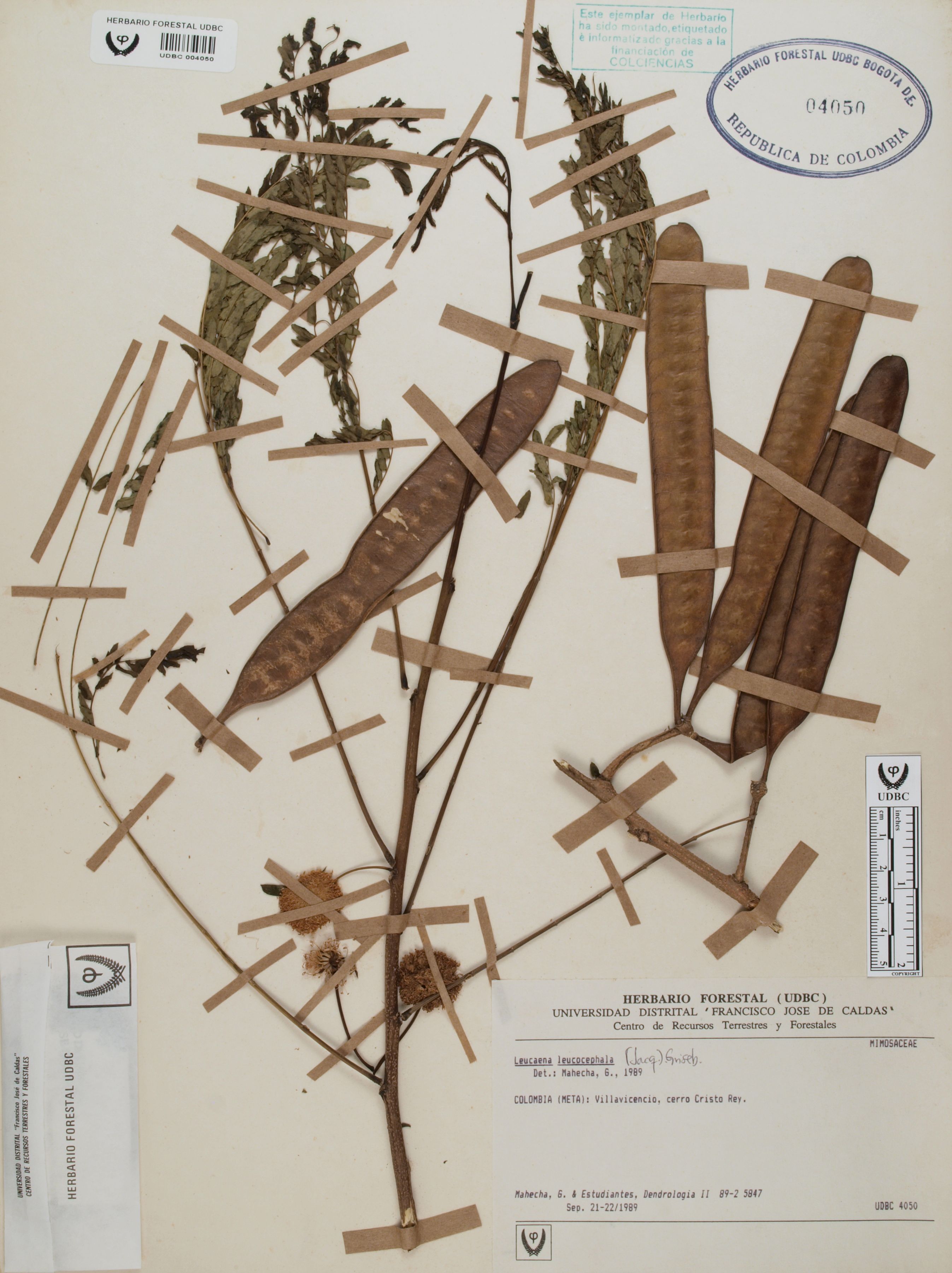 Fotografía del ejemplar Mahecha, G. 5847, determinado como Leucaena leucocephala en el año 1989