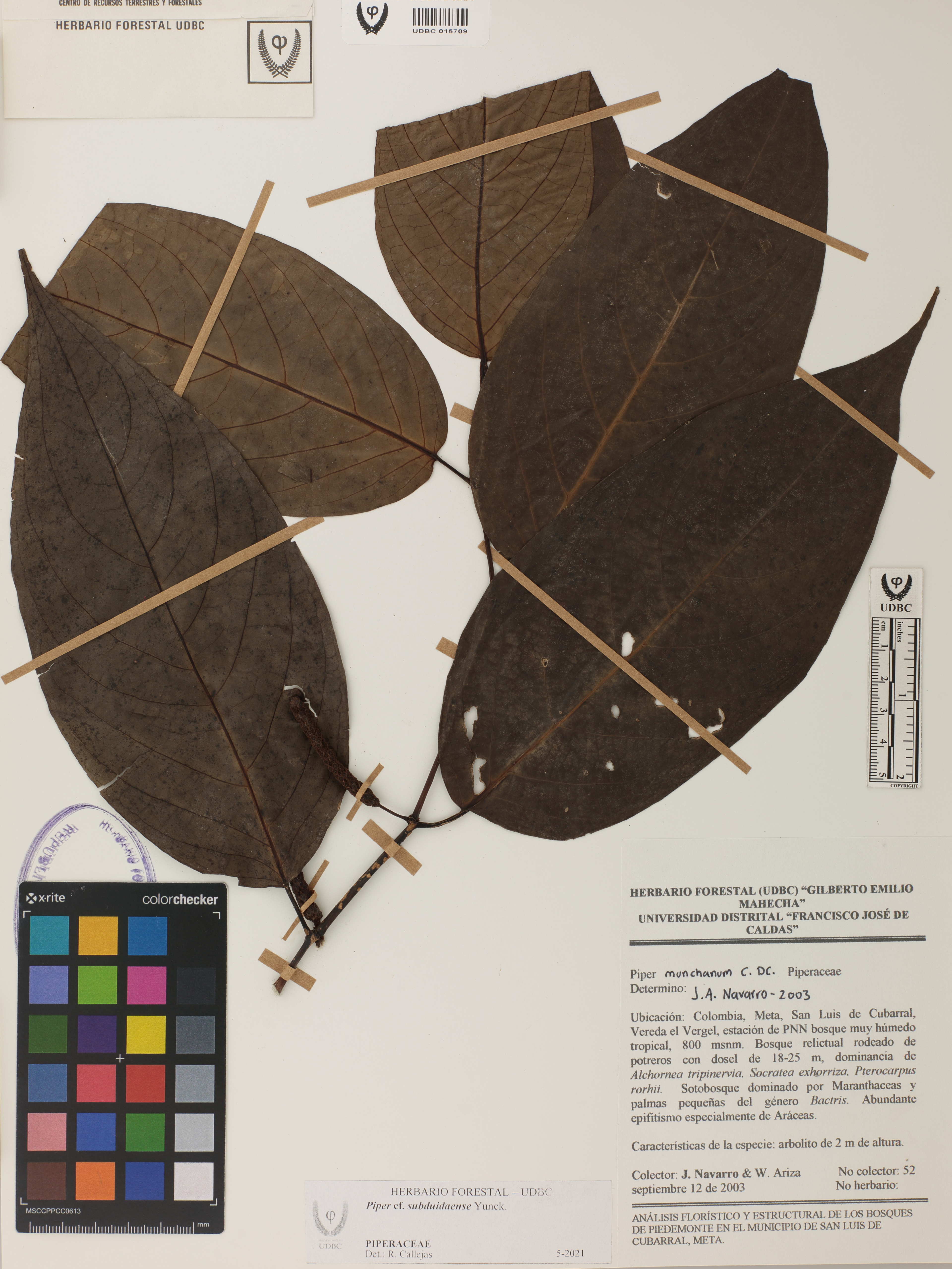 Fotografía del ejemplar Navarro, J. 52, determinado como Piper subduidaense en el año 2021