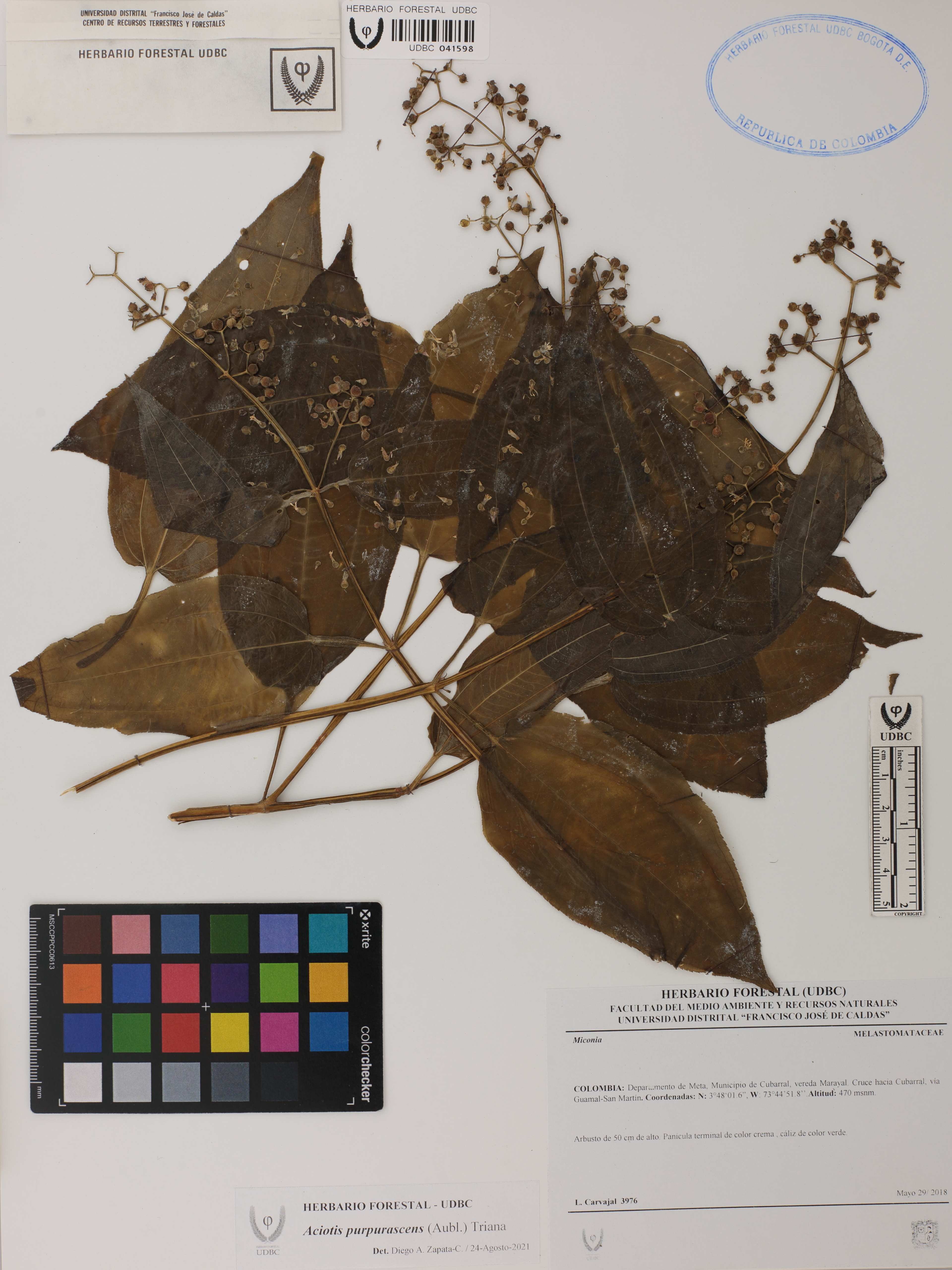 | dc.description | Fotografía del ejemplar Carvajal, L. 3976, determinado como Aciotis purpurascens en el año 2021 | |