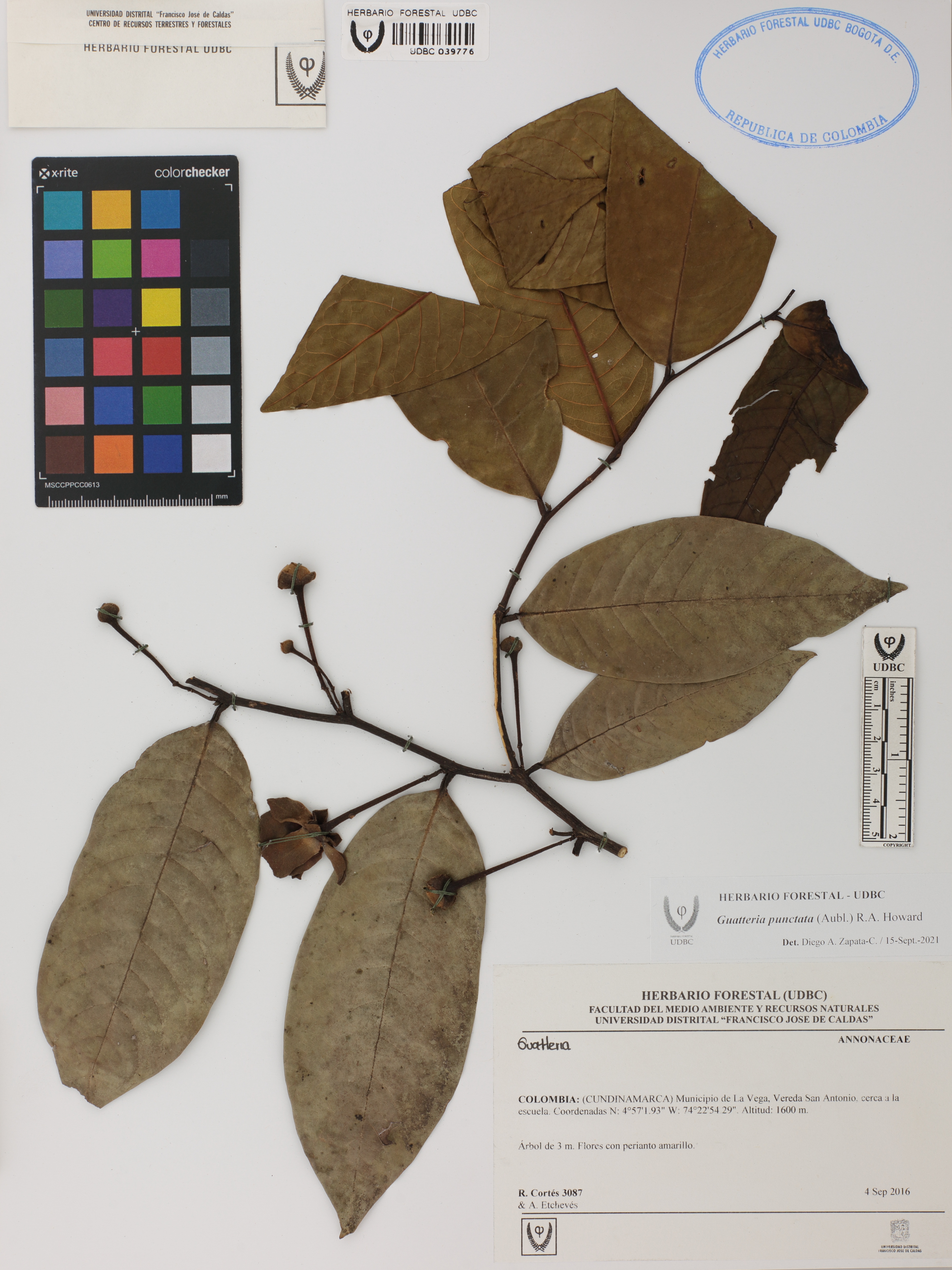 Fotografía del ejemplar Cortés, R. 3087, determinado como Guatteria punctata en el año 2021
