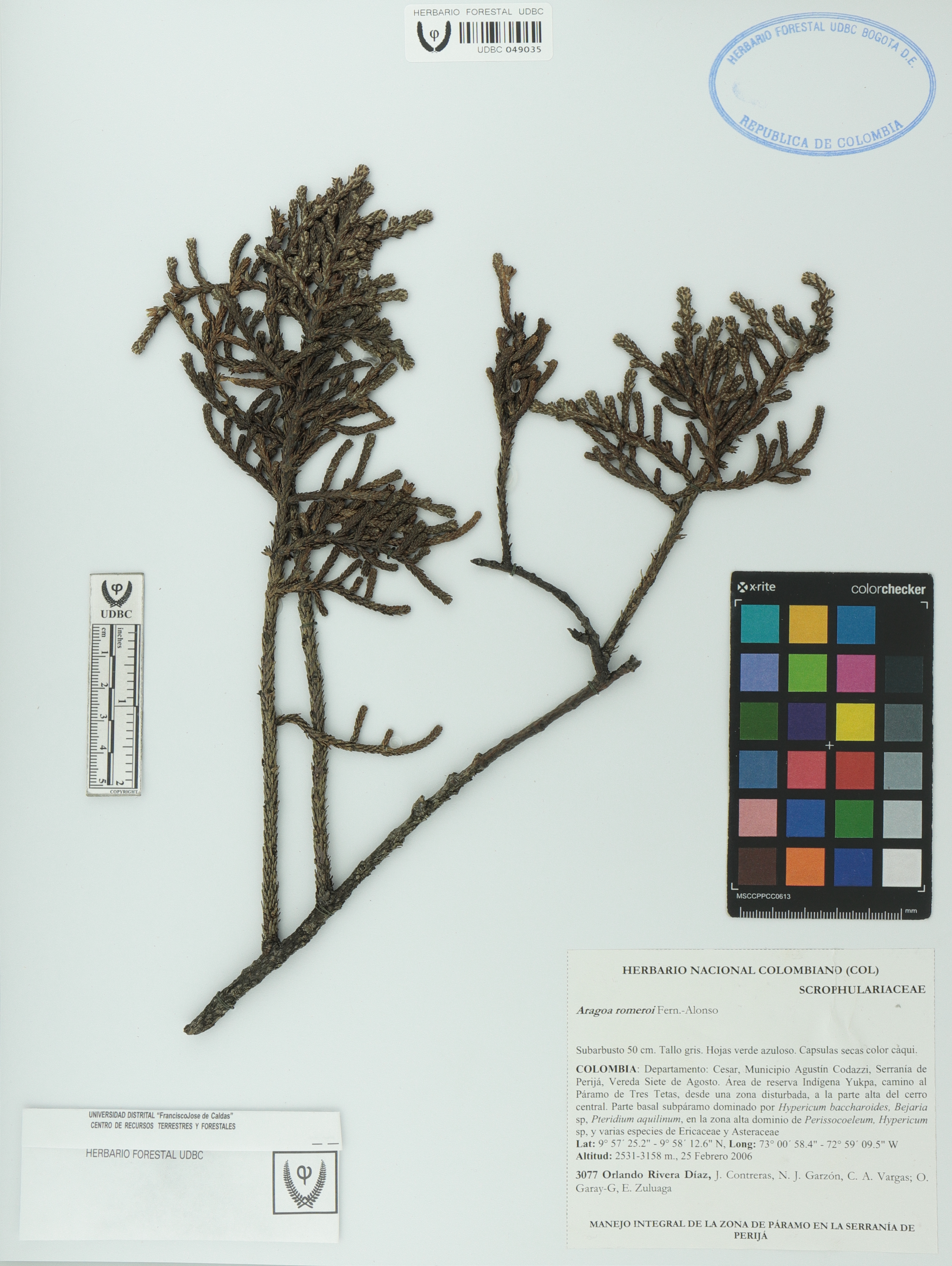 Fotografía del ejemplar Rivera-Díaz, O. 3077, determinado como Aragoa romeroi