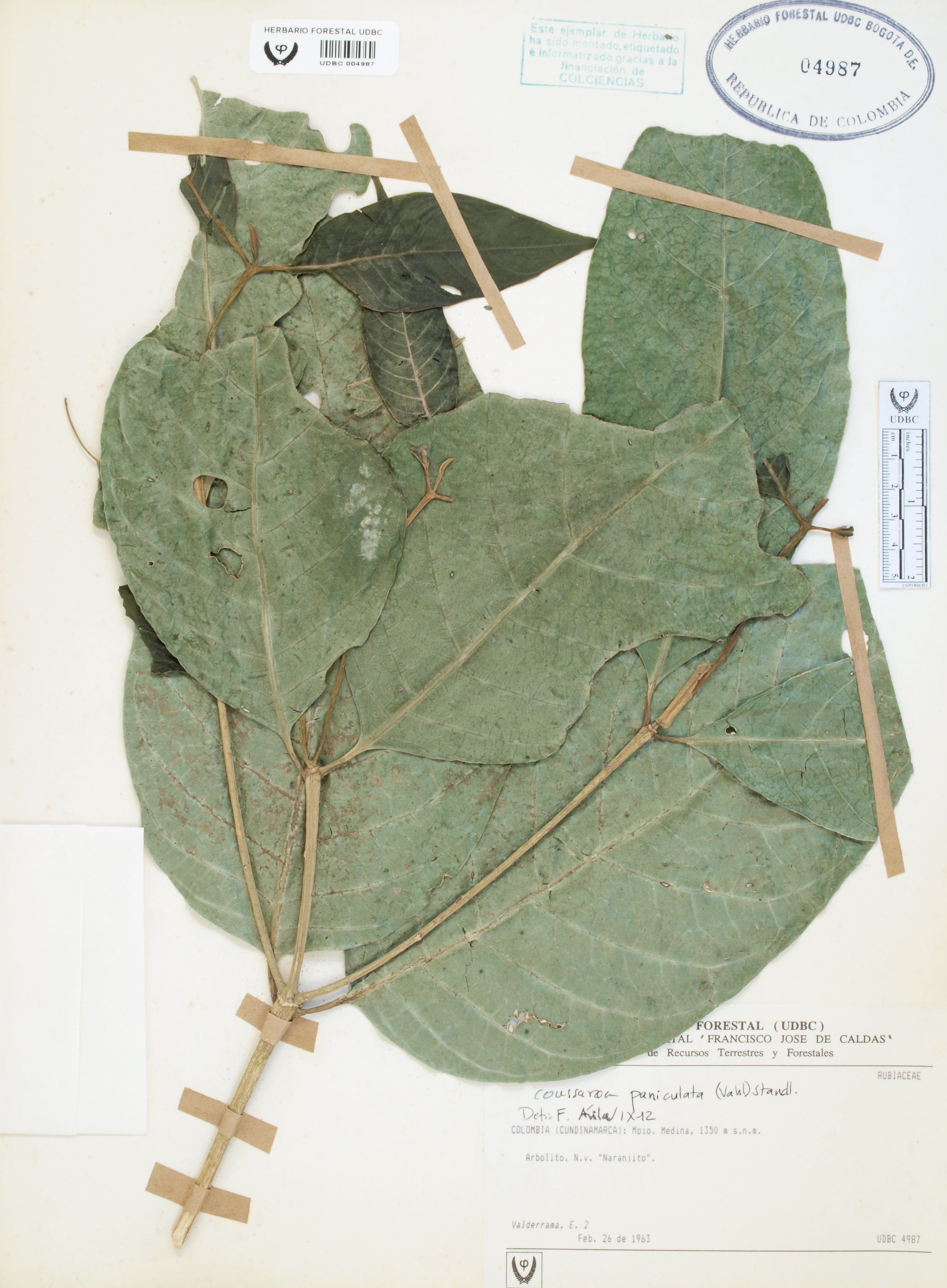 | dc.description | Fotografía del ejemplar Valderrama, E. 2, determinado como Coussarea paniculata en el año 2012 | |