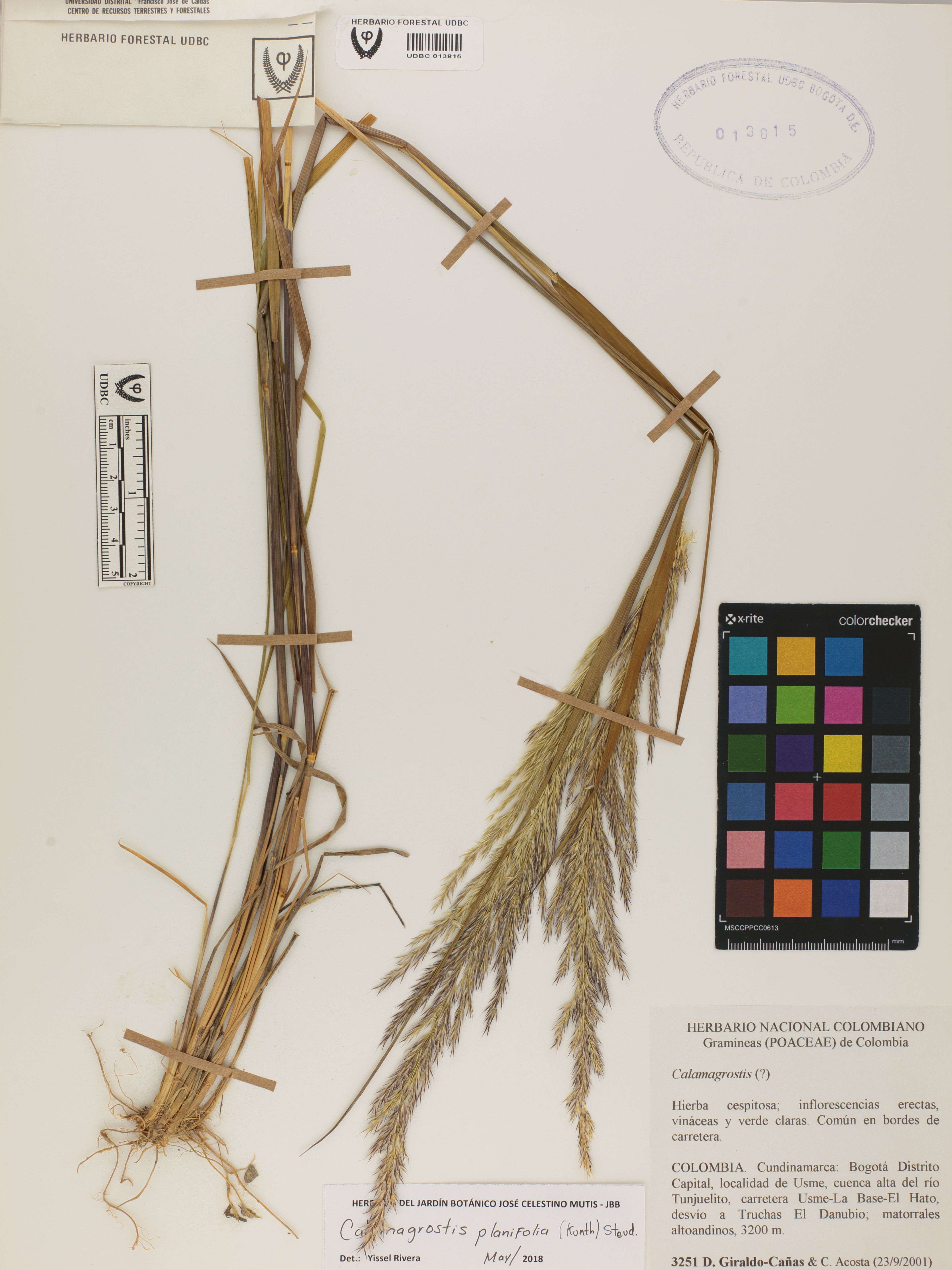 Fotografía del ejemplar Giraldo-Cañas, D. 3251, determinado como Calamagrostis planifolia en el año 2018