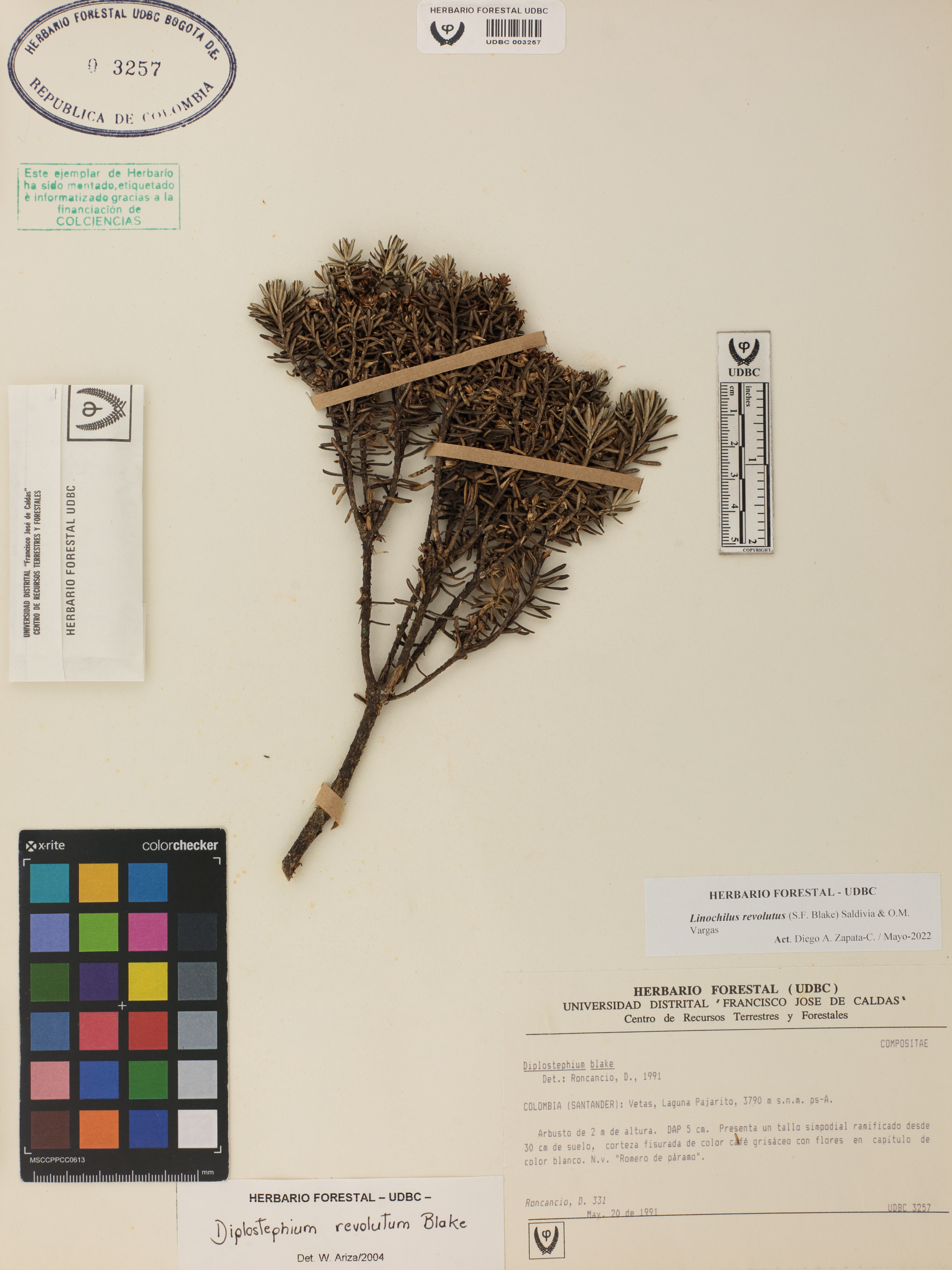 Fotografía del ejemplar Roncancio, D. 331, determinado como Linochilus revolutus en el año 2004