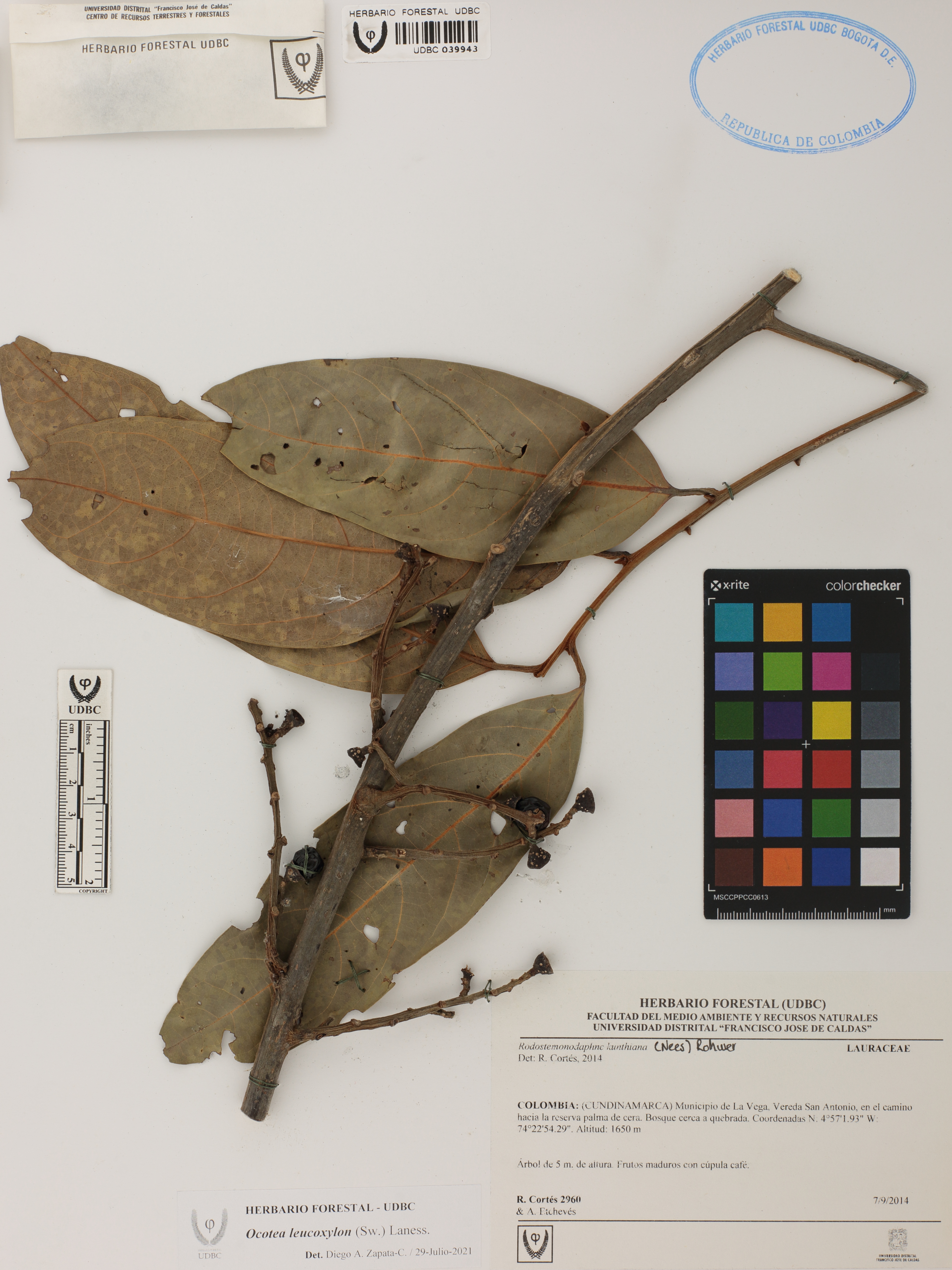 Fotografía del ejemplar Cortés, R. 2960, determinado como Ocotea leucoxylon en el año 2021