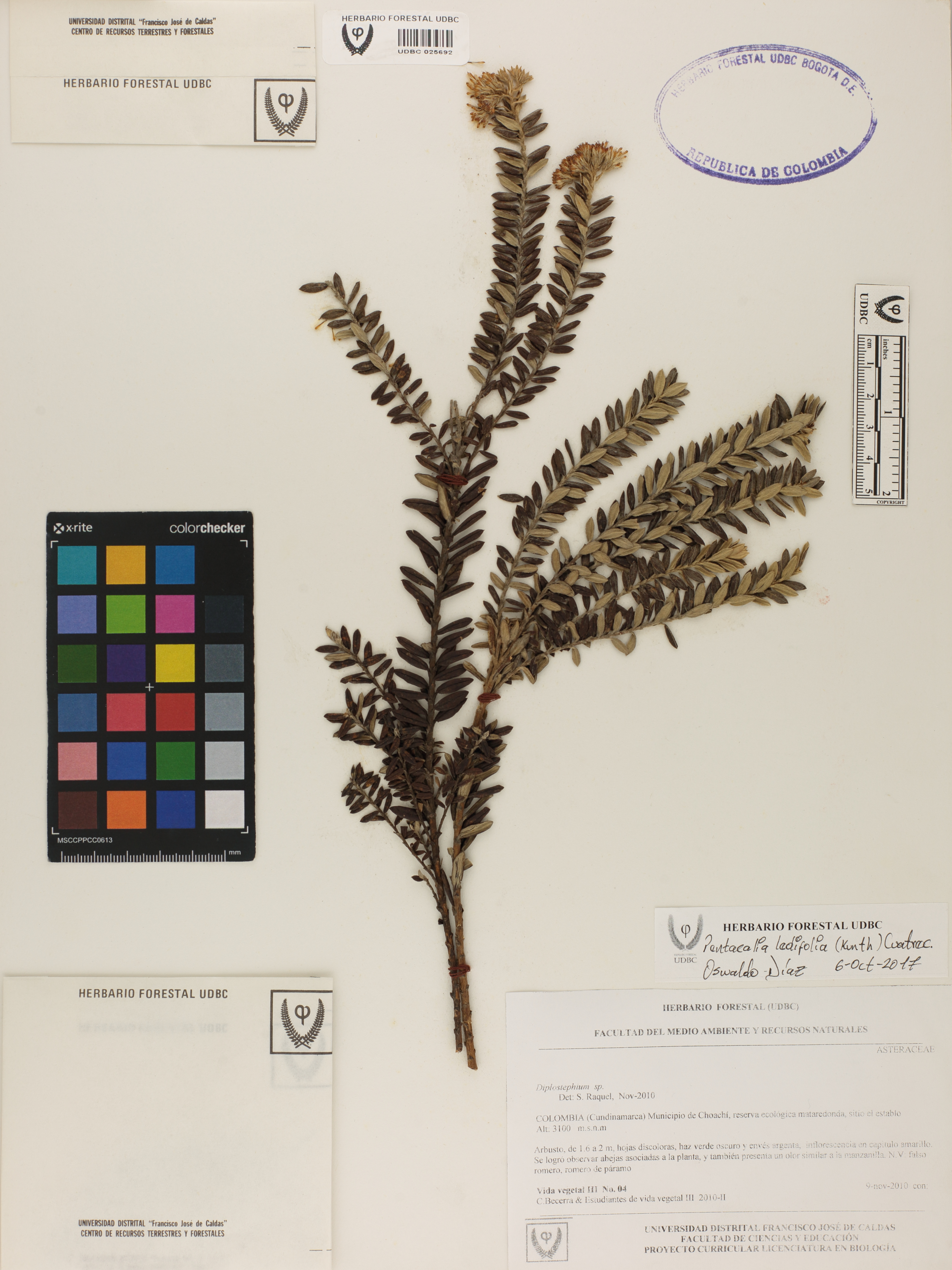 Fotografía del ejemplar Becerra, C. 4, determinado como Pentacalia ledifolia en el año 2019