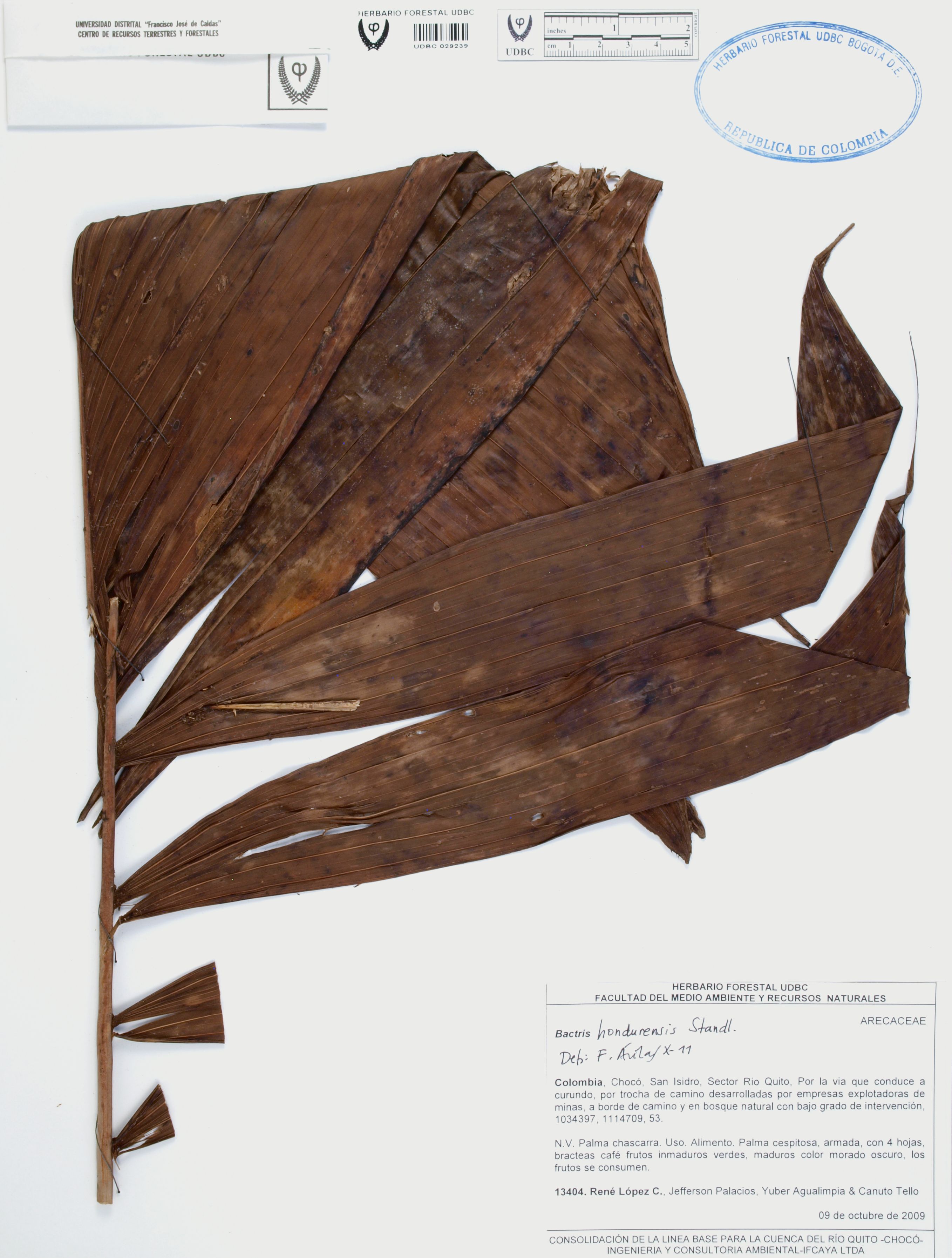 | dc.description | Fotografía del ejemplar López, R. 13404, determinado como Bactris hondurensis en el año 2011 | |