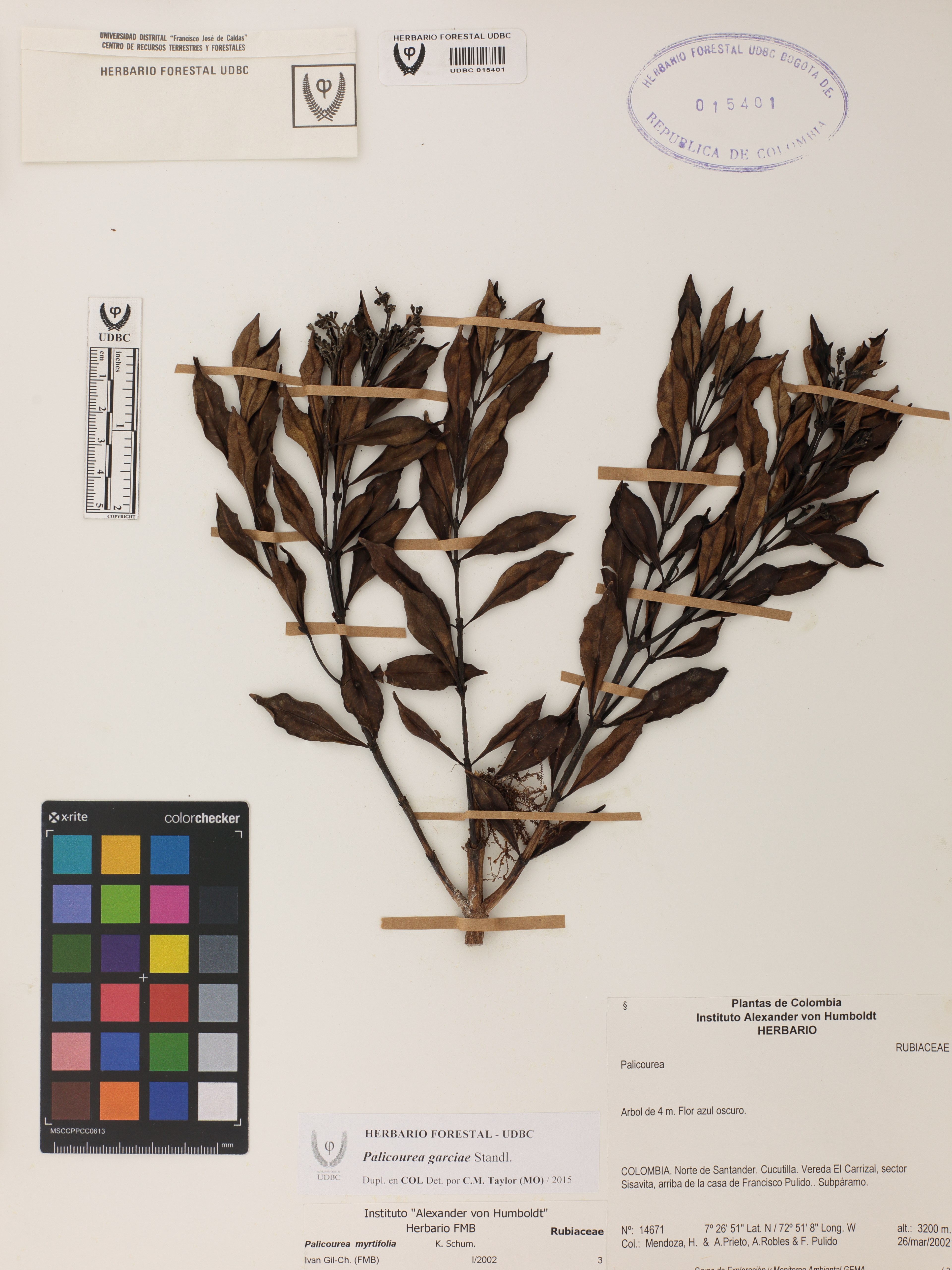 Fotografía del ejemplar Mendoza, H. 14671, determinado como Palicourea garciae en el año 2015