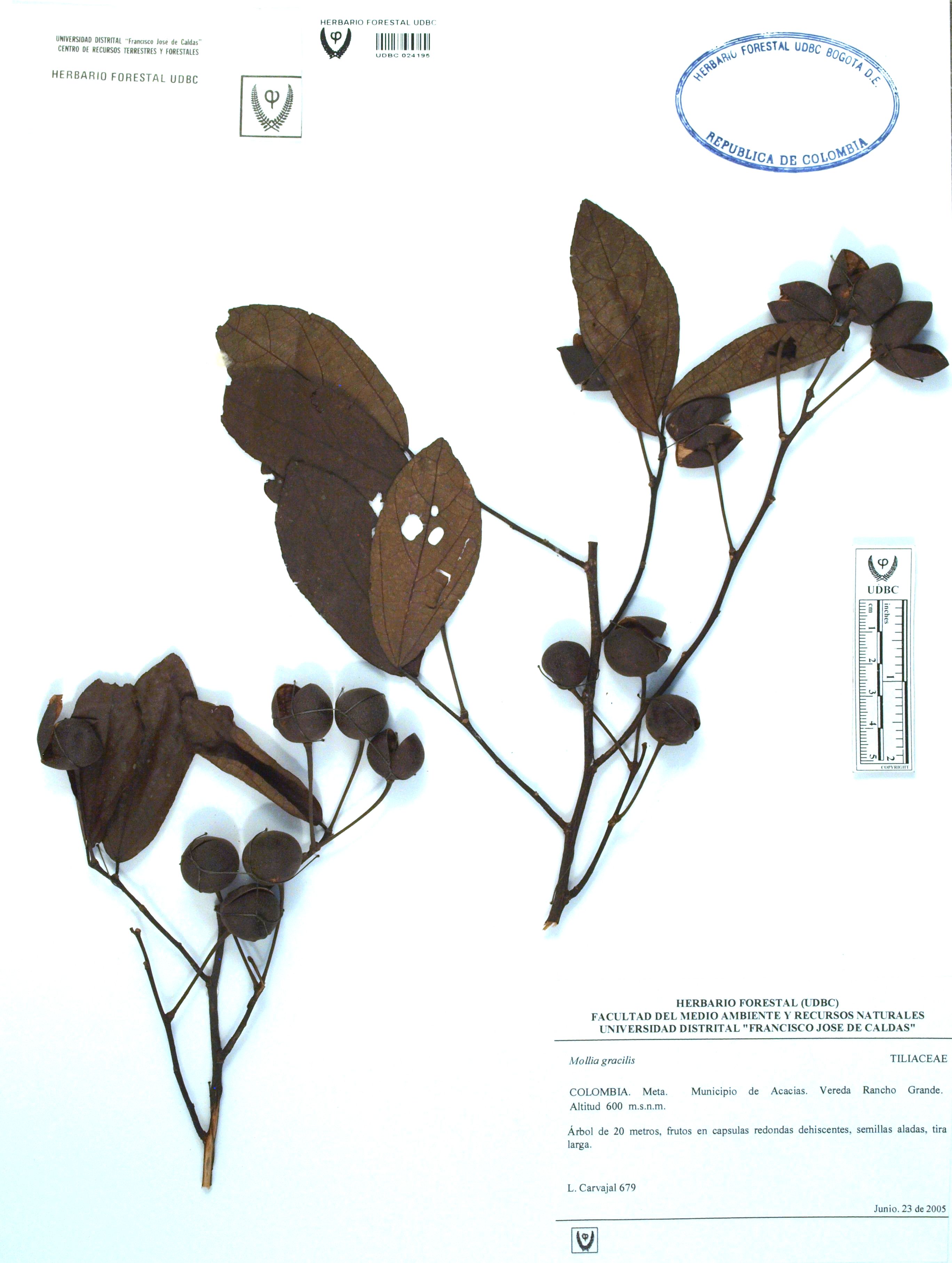 Fotografía del ejemplar Carvajal, L. 679, determinado como Mollia gracilis