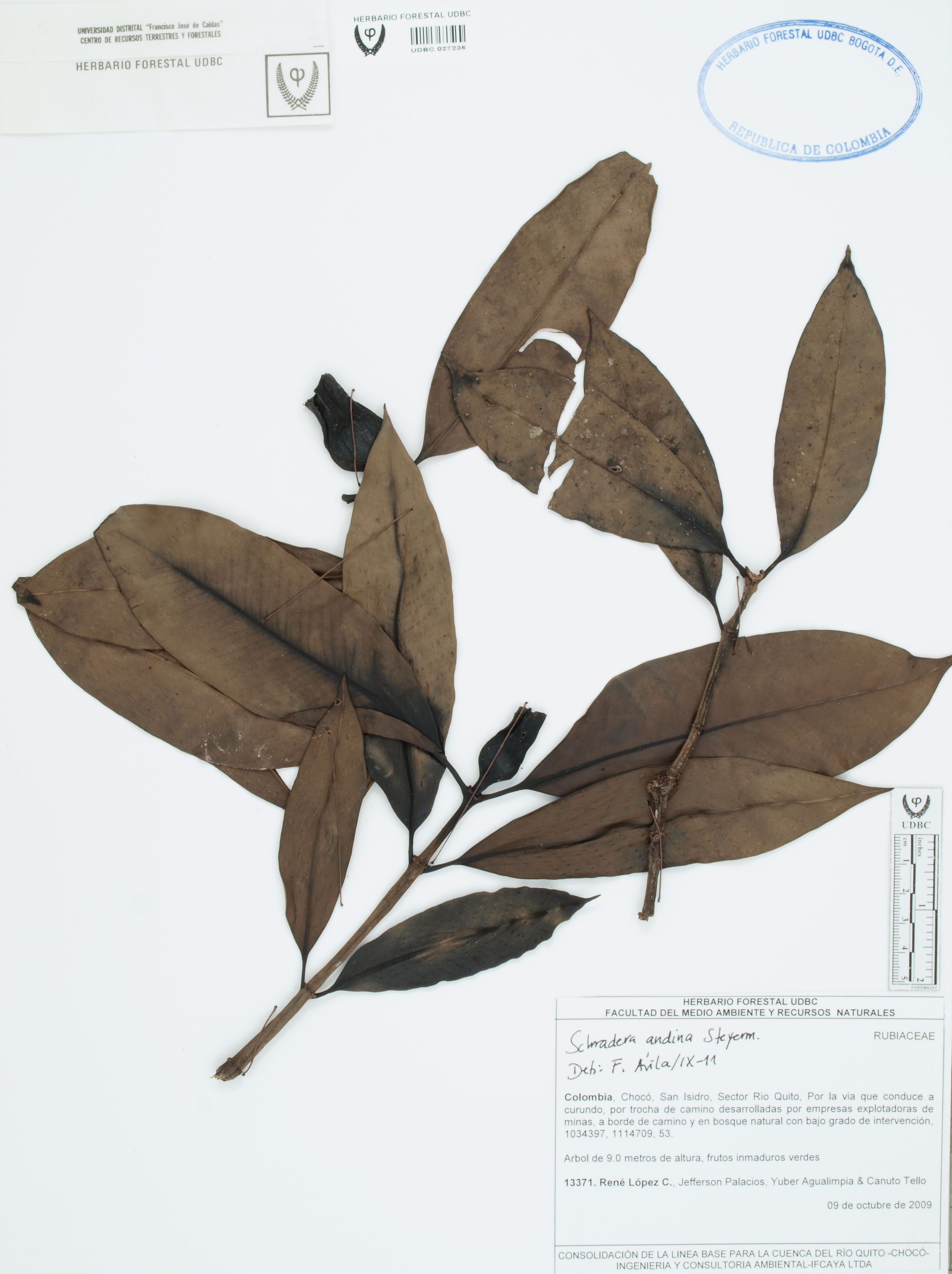 Fotografía del ejemplar López, R. 13371, determinado como Schradera andina en el año 2011