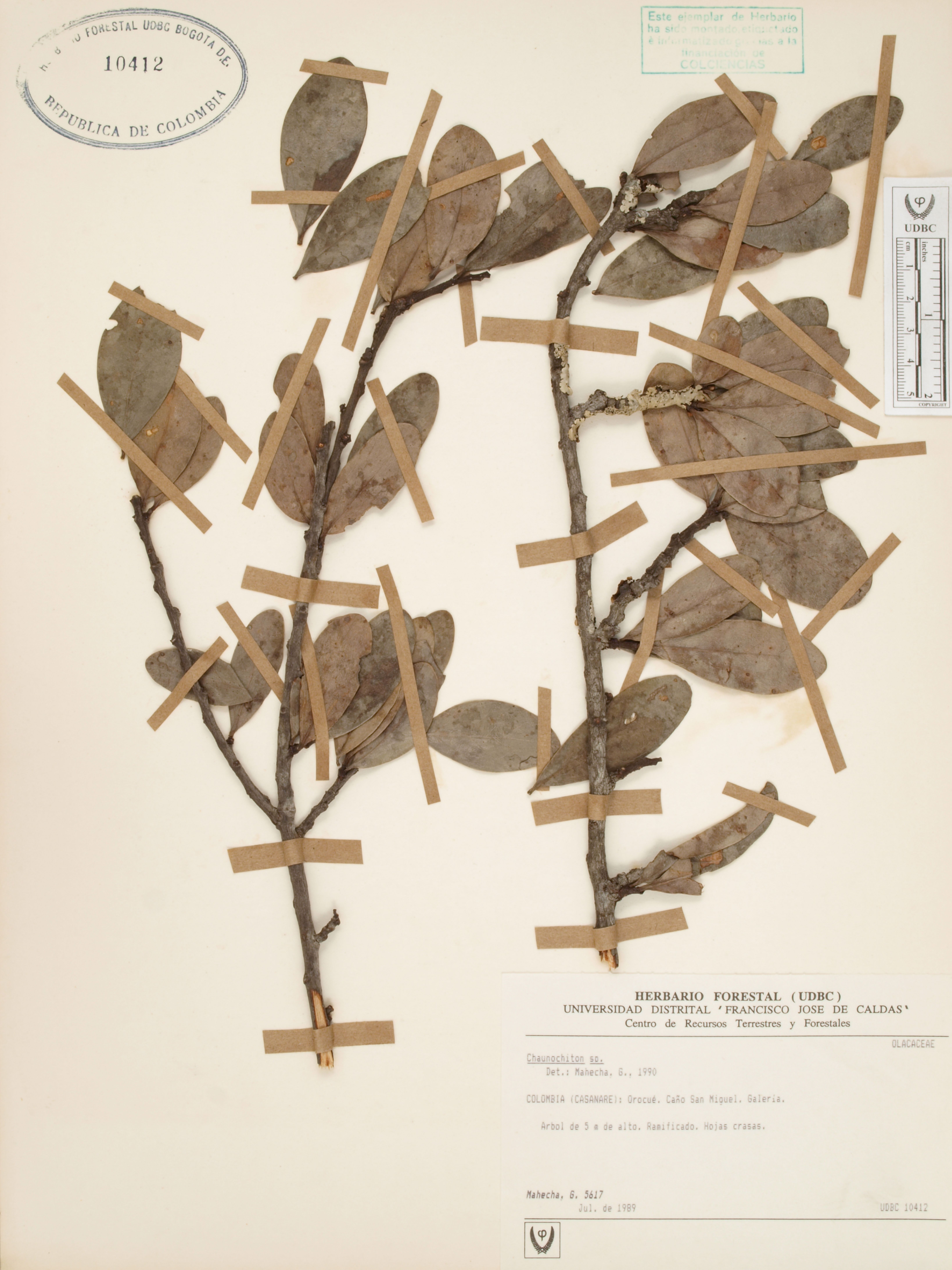 Fotografía del ejemplar Mahecha, G. 5617, determinado como Chaunochiton angustifolium en el año 2009