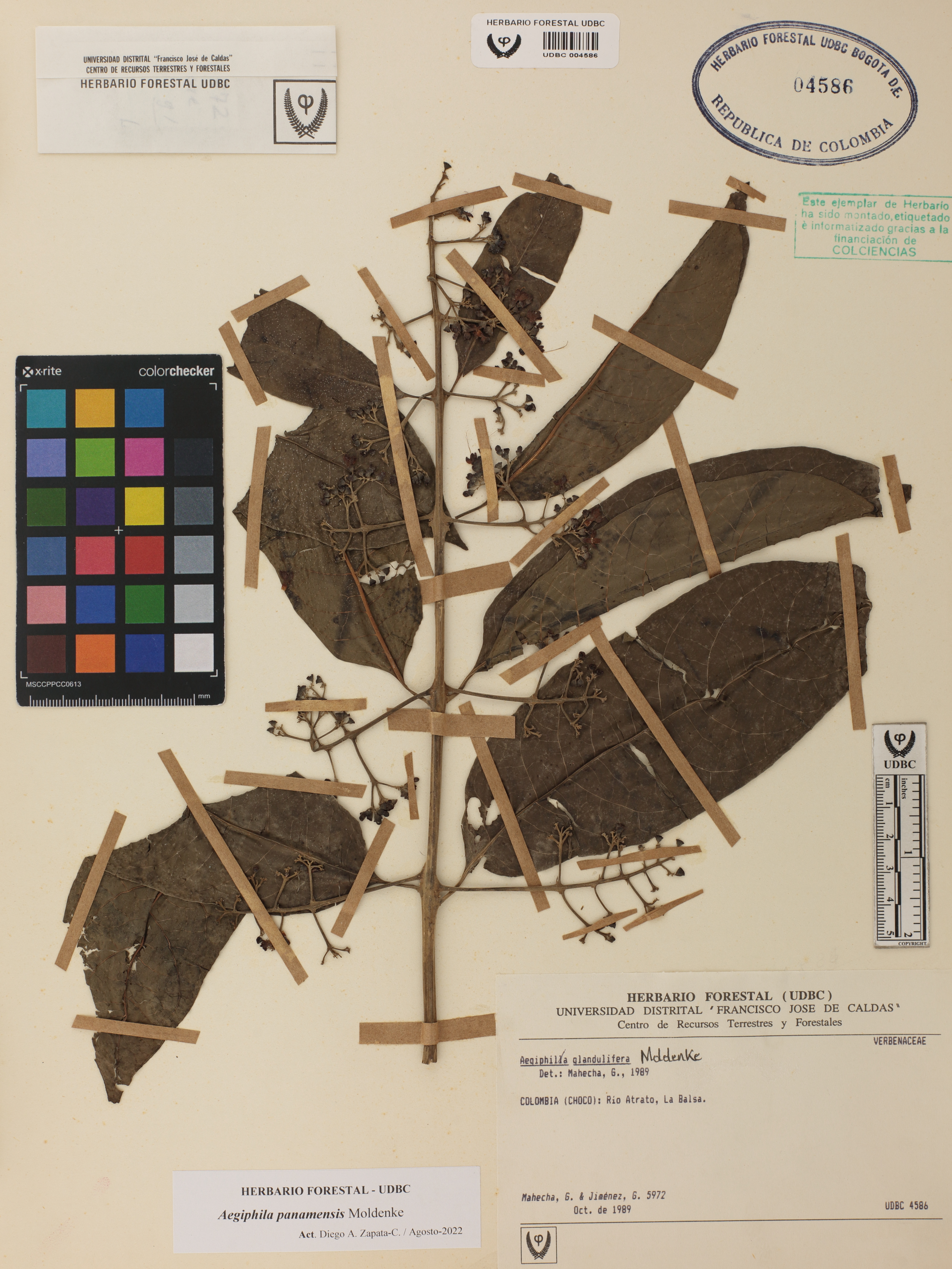 Fotografía del ejemplar Mahecha, G. 5972, determinado como Aegiphila panamensis en el año 1989