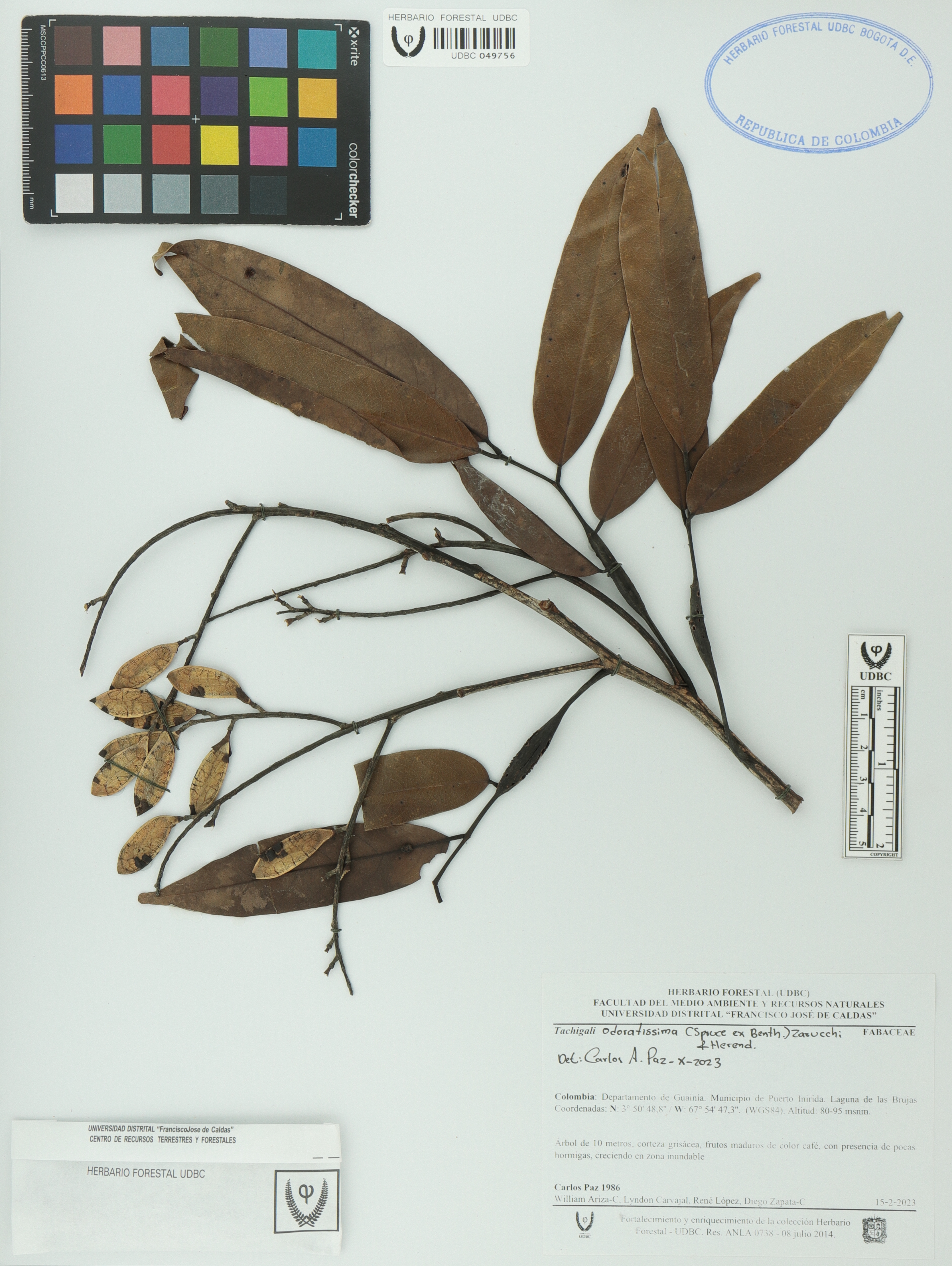 Fotografía del ejemplar Paz, Carlos A. 1986, determinado como Tachigali odoratissima en el año 2023