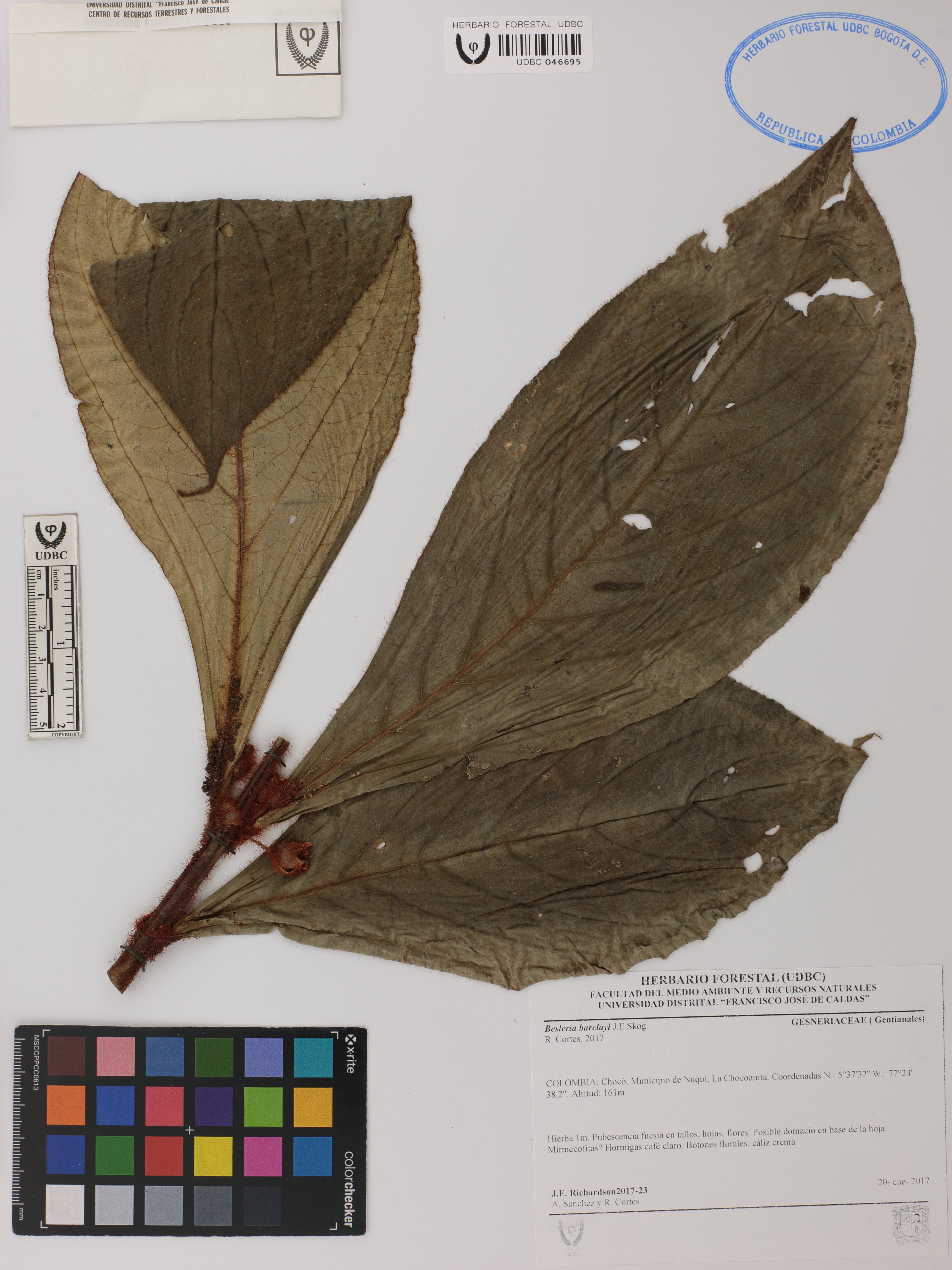 Fotografía del ejemplar Richardson, J. 23, determinado como Besleria barclayi en el año 2017