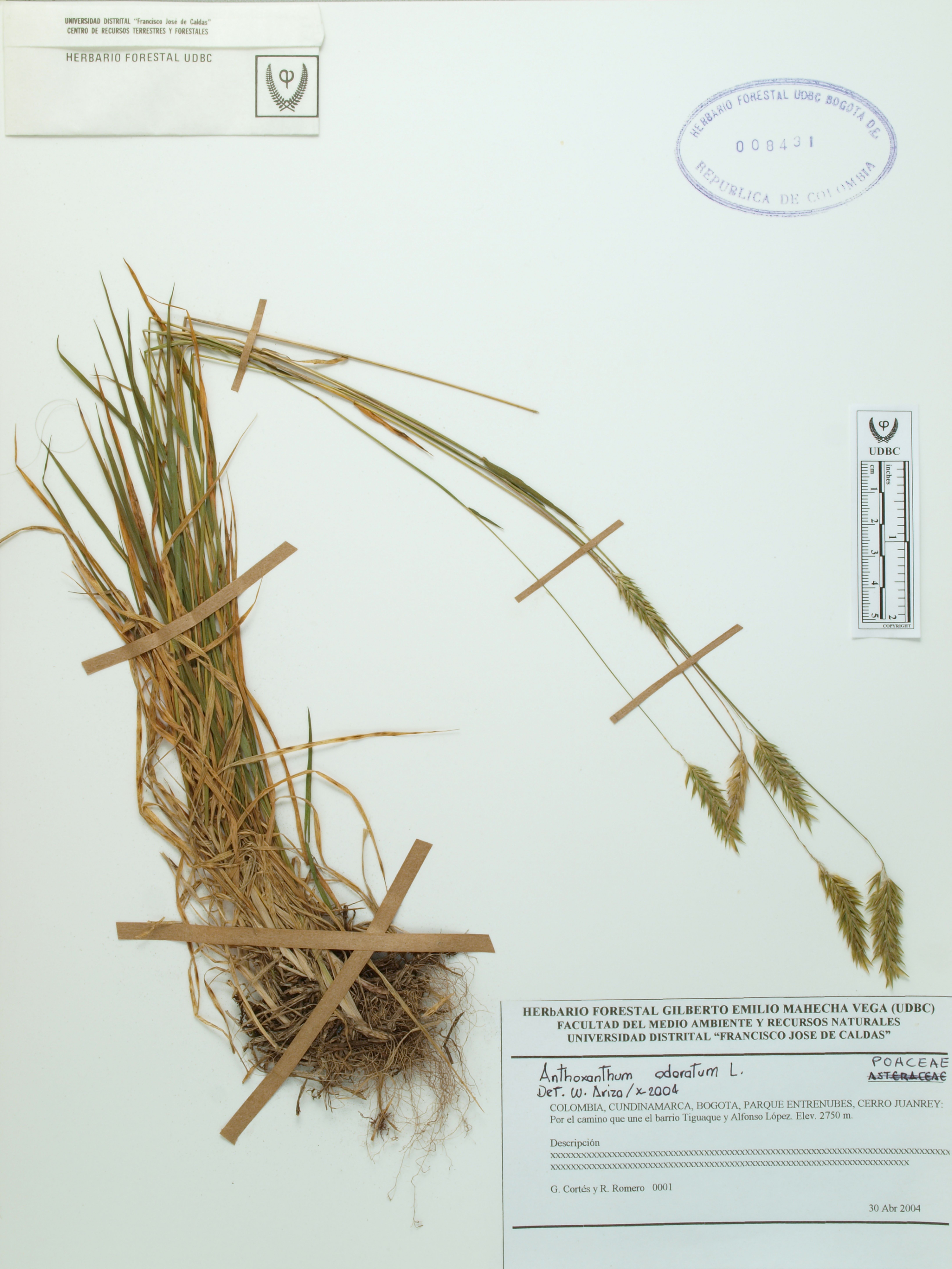 Fotografía del ejemplar Cortés, G. 1, determinado como Anthoxanthum odoratum en el año 2004