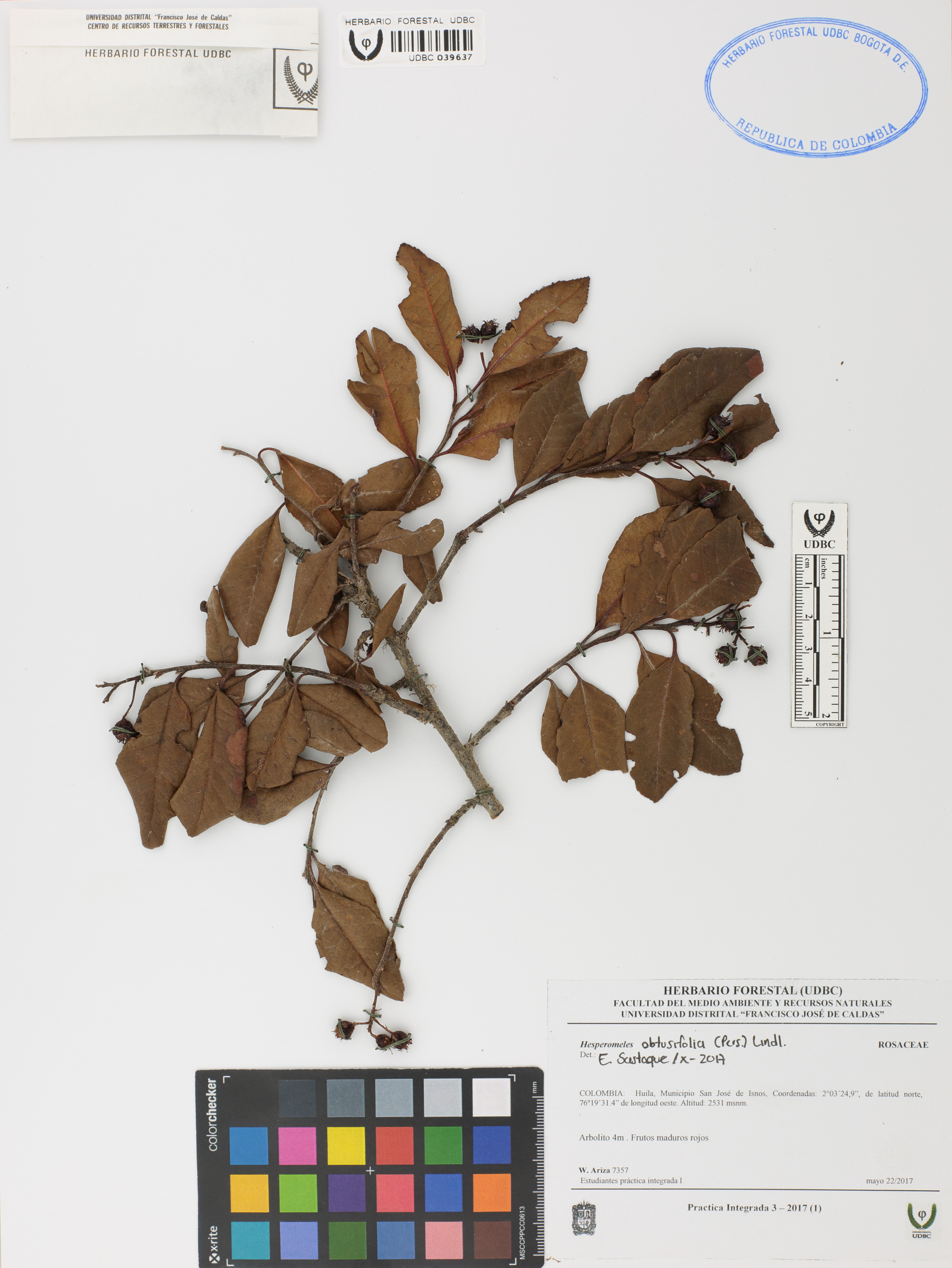 | dc.description | Fotografía del ejemplar Ariza, W. 7357, determinado como Hesperomeles obtusifolia en el año 2017 | |