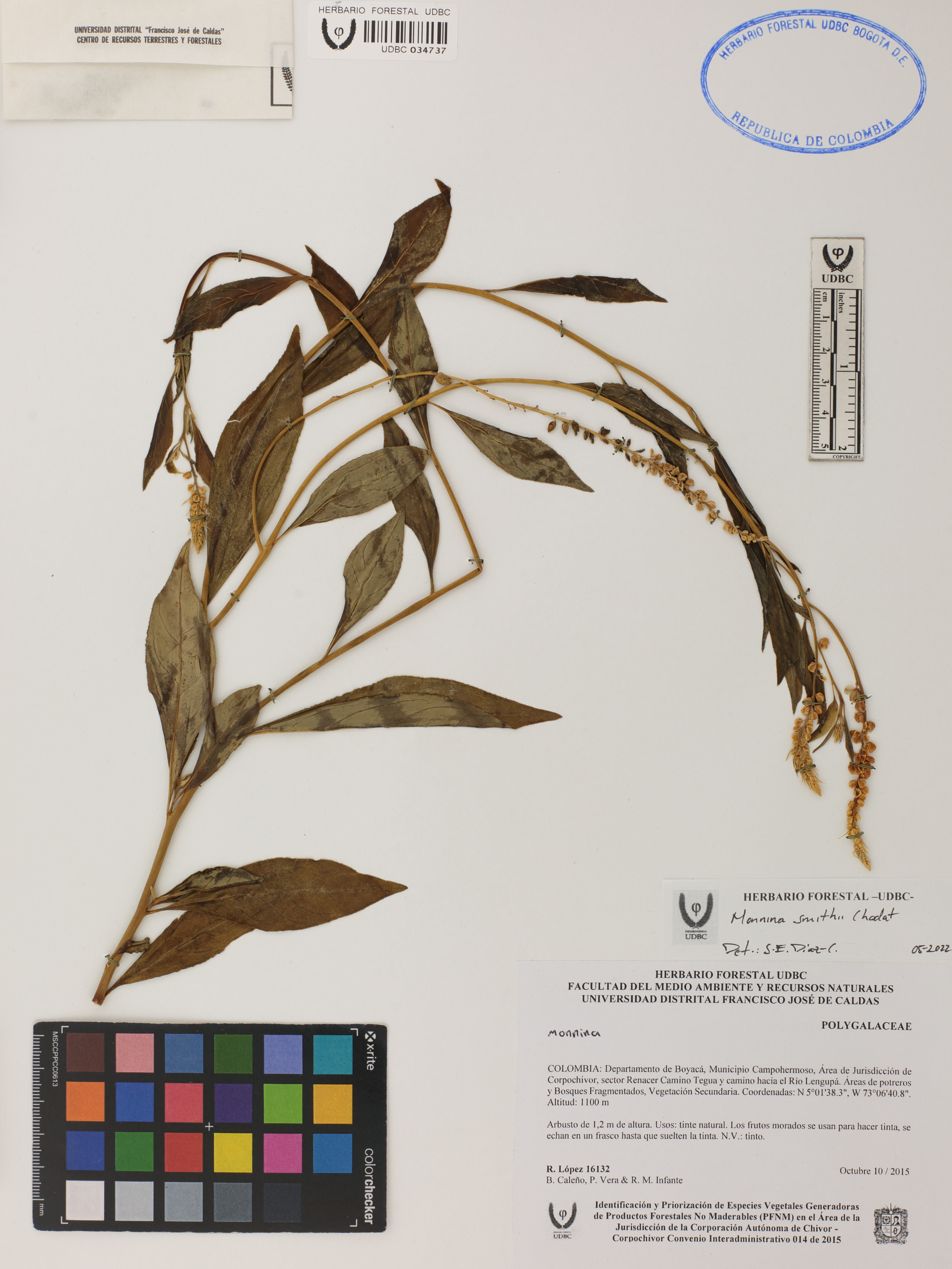 Fotografía del ejemplar López, R. 16132, determinado como Monnina smithii en el año 2022