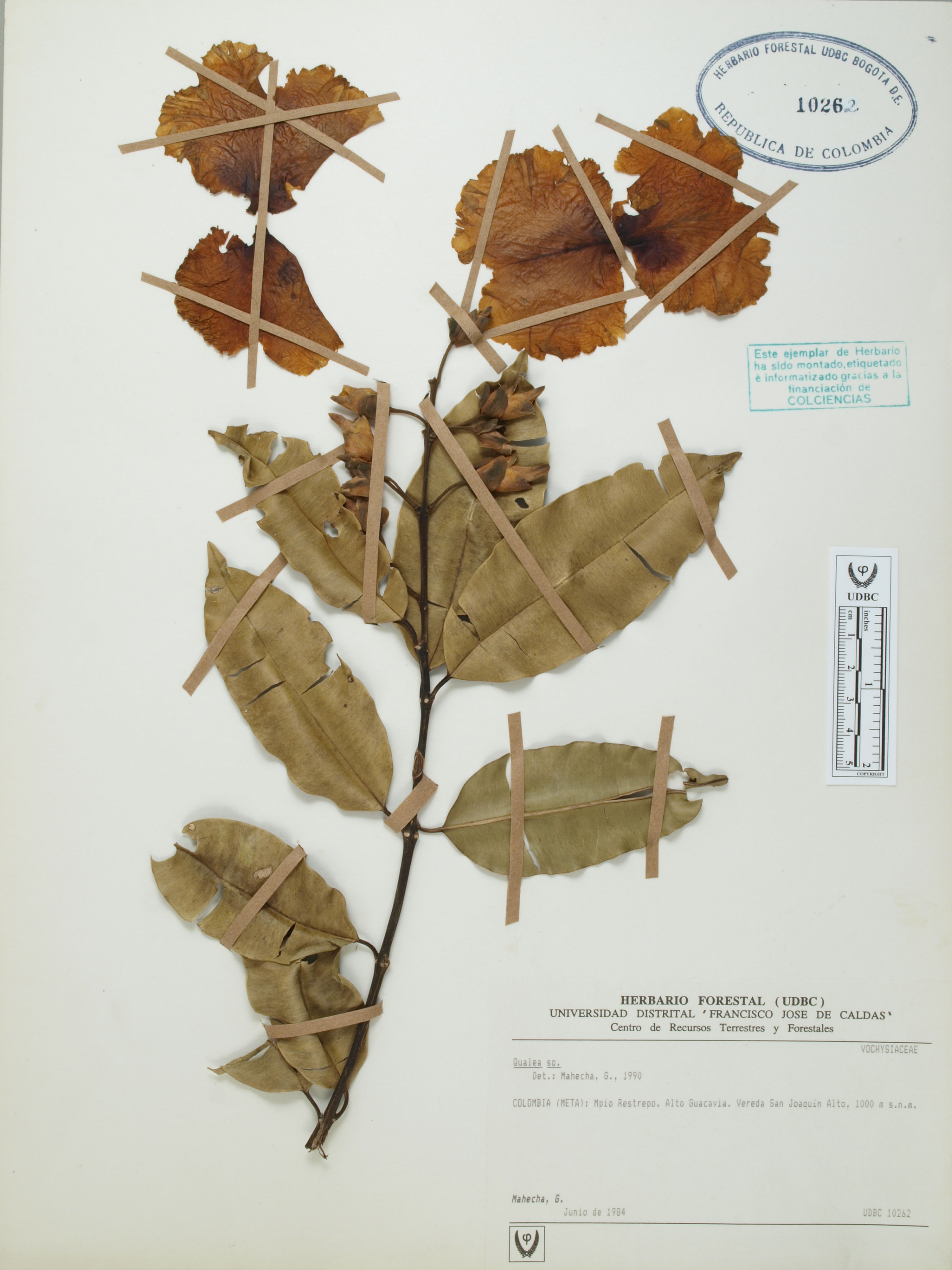 Fotografía del ejemplar Mahecha, G., determinado como Qualea sp. en el año 1990