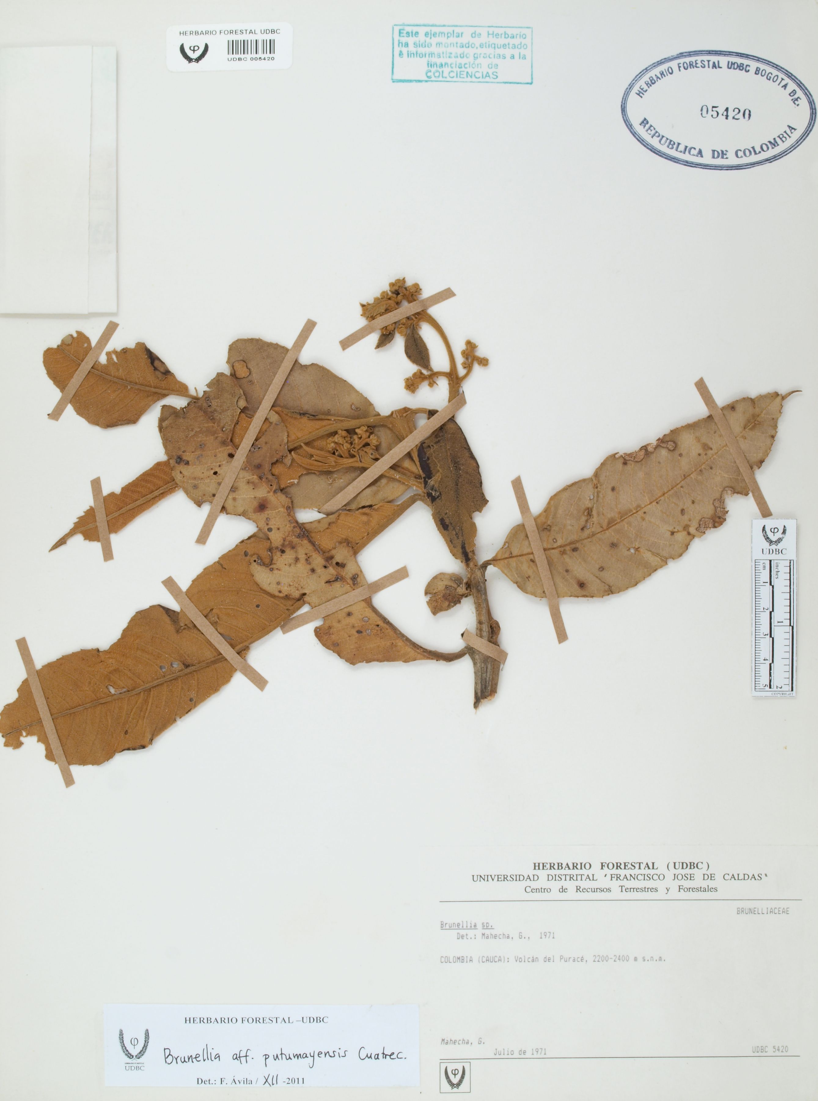 Fotografía del ejemplar Mahecha, G., determinado como Brunellia putumayensis en el año 2011