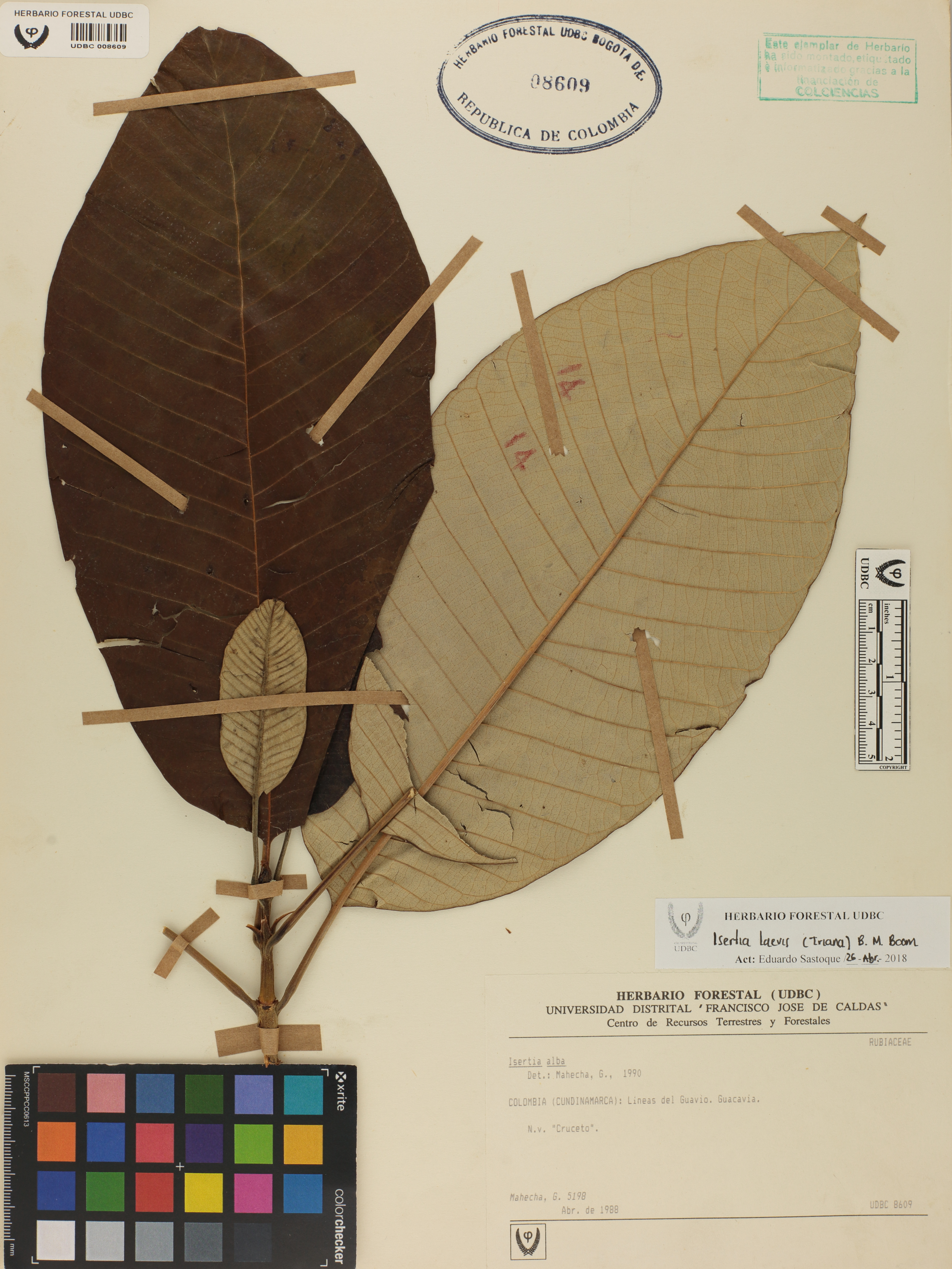 Fotografía del ejemplar Mahecha, G. 5198, determinado como Isertia laevis en el año 1990