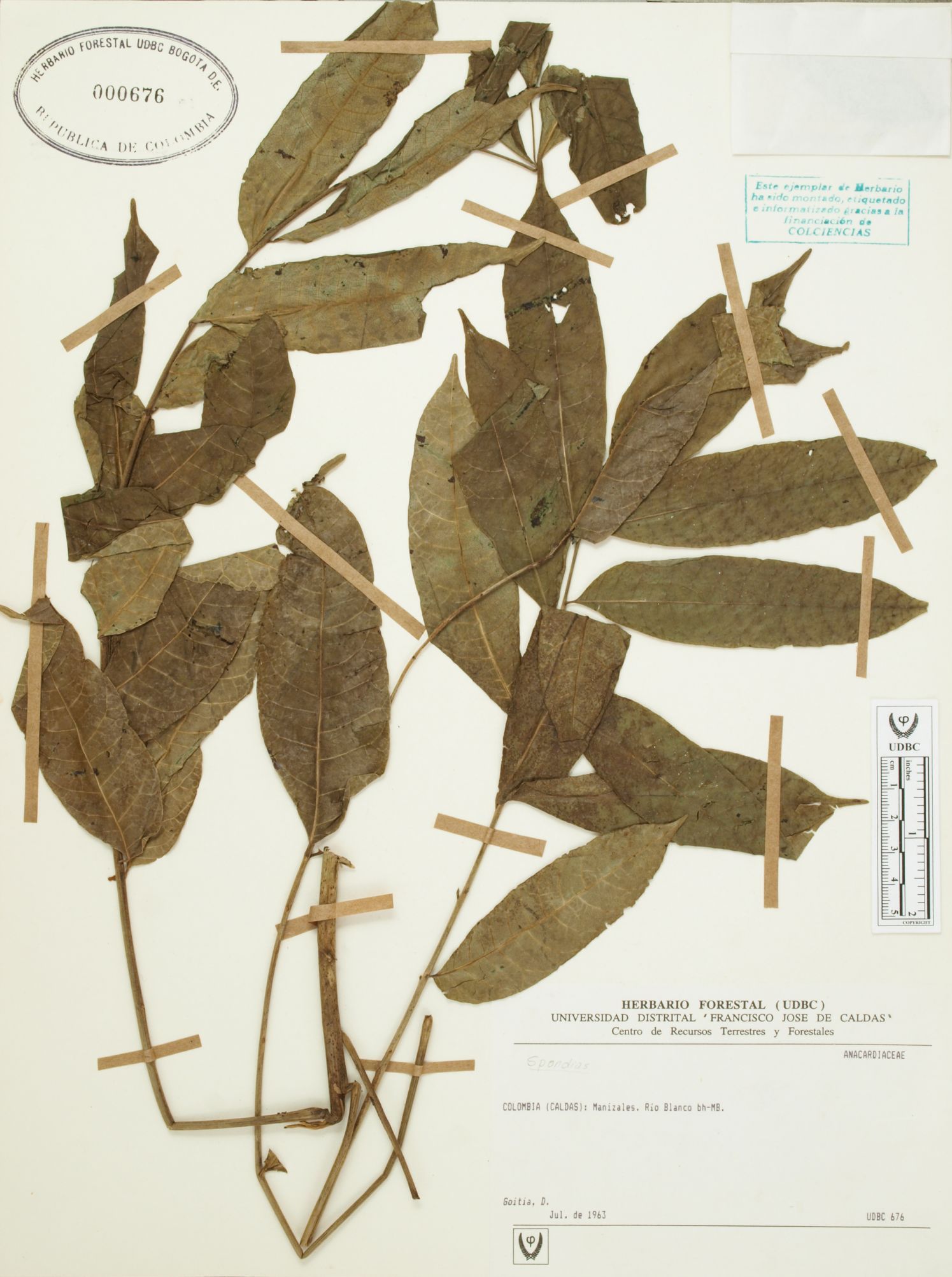 Fotografía del ejemplar Goitia, D., determinado como Spondias sp.