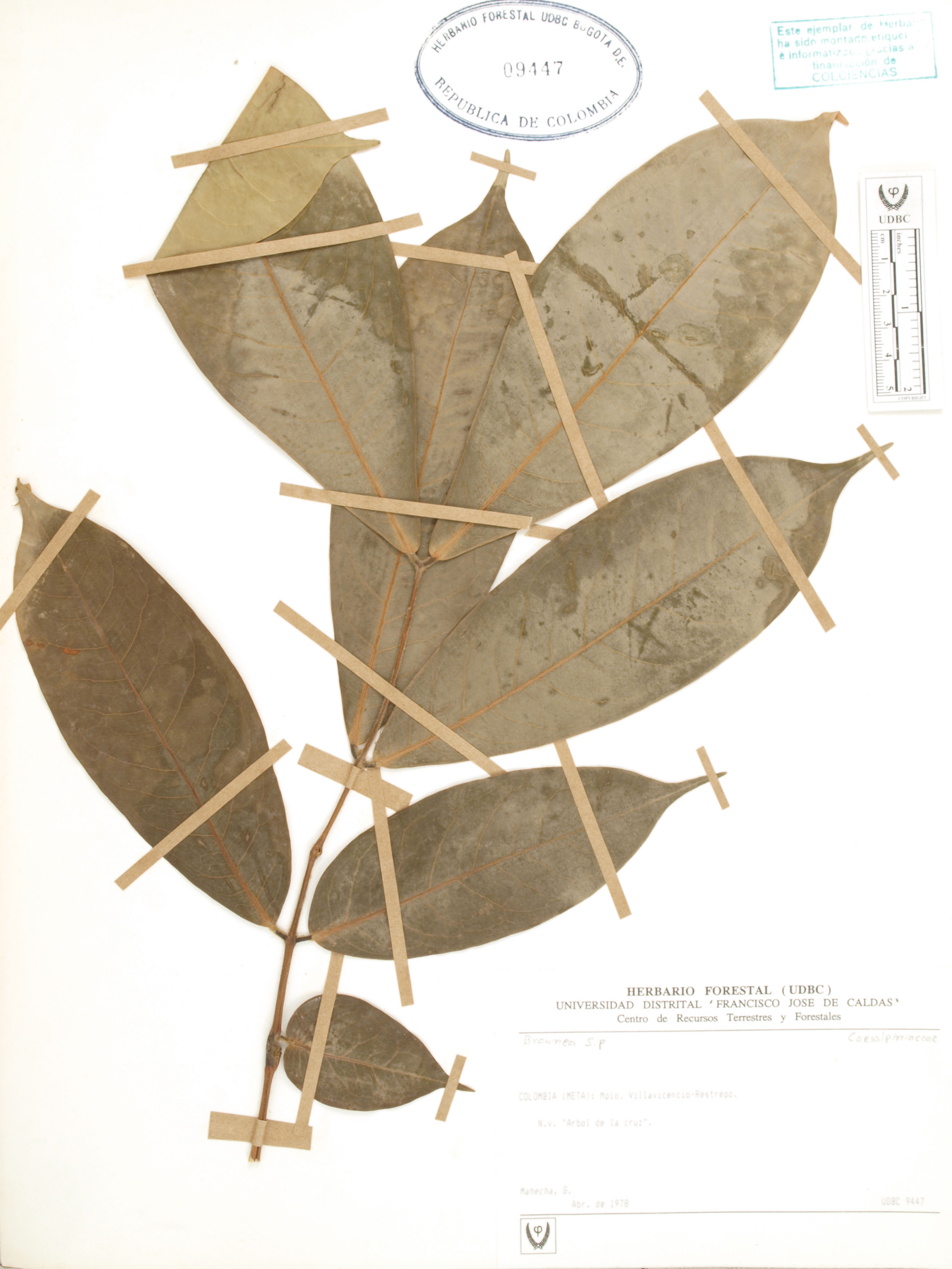 Fotografía del ejemplar Mahecha, G., determinado como Brownea sp.