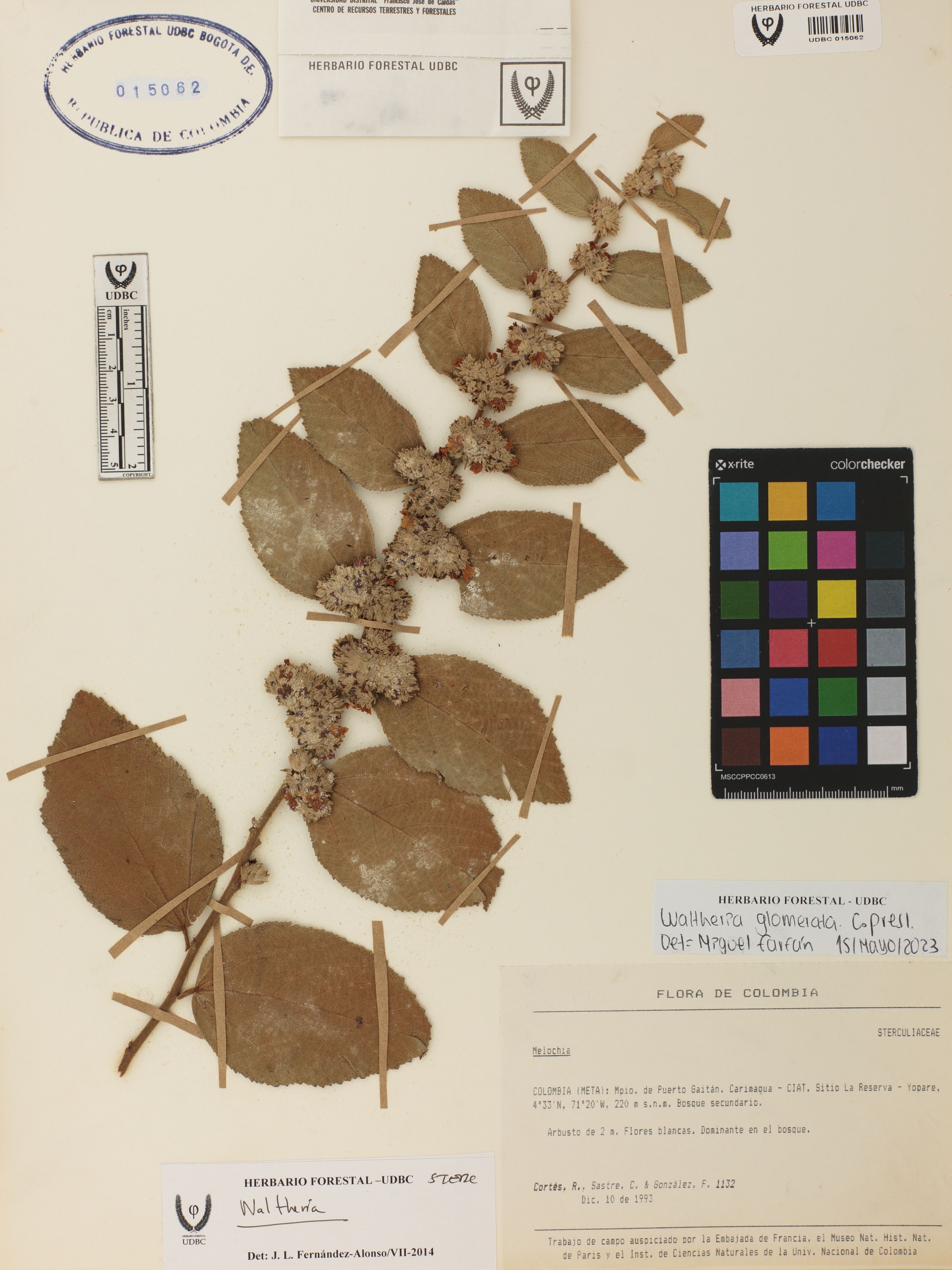 Fotografía del ejemplar Cortés, R. 1132, determinado como Waltheria glomerata en el año 2023