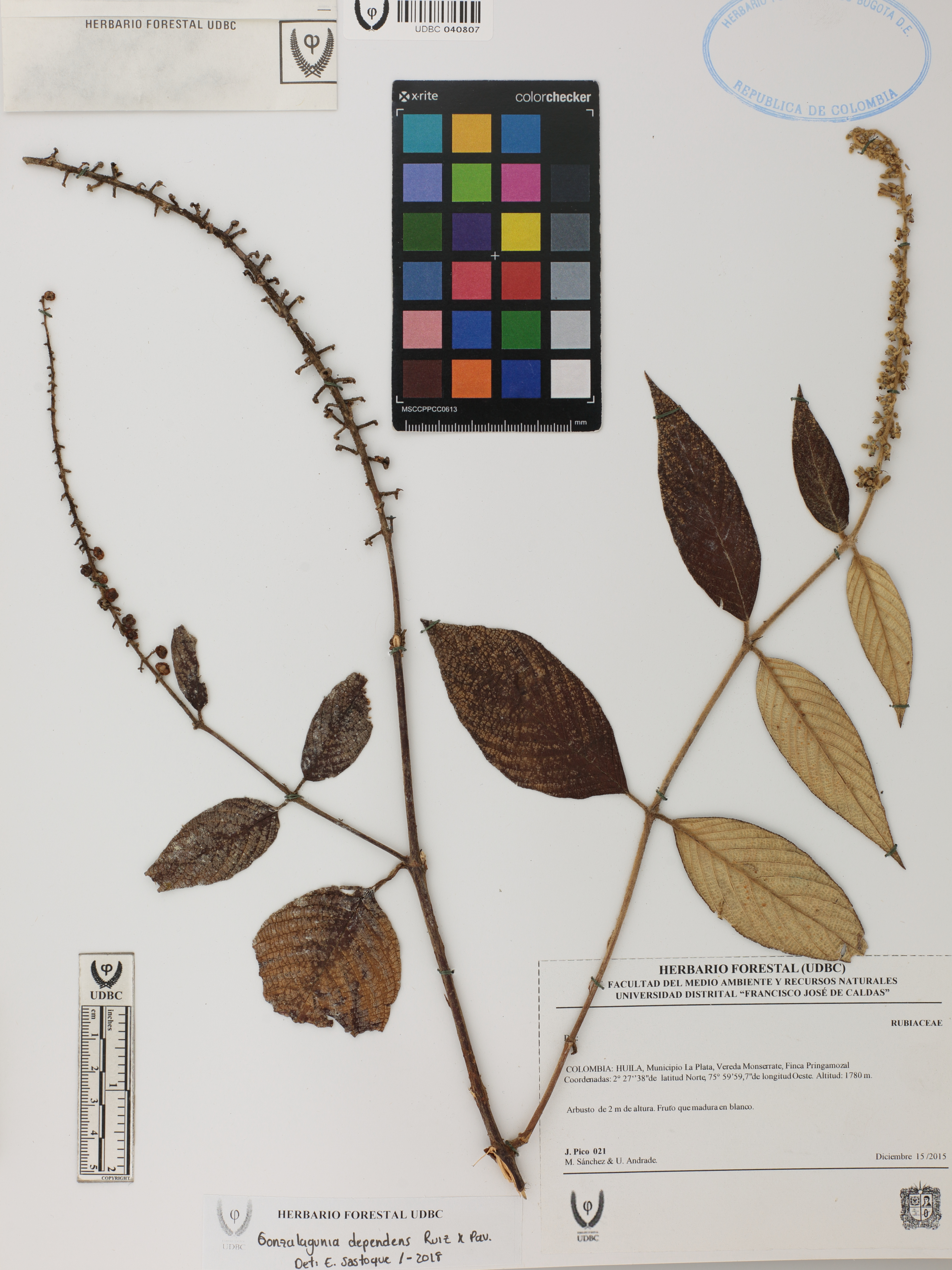 Fotografía del ejemplar Pico, J. 21, determinado como Gonzalagunia dependens en el año 2018