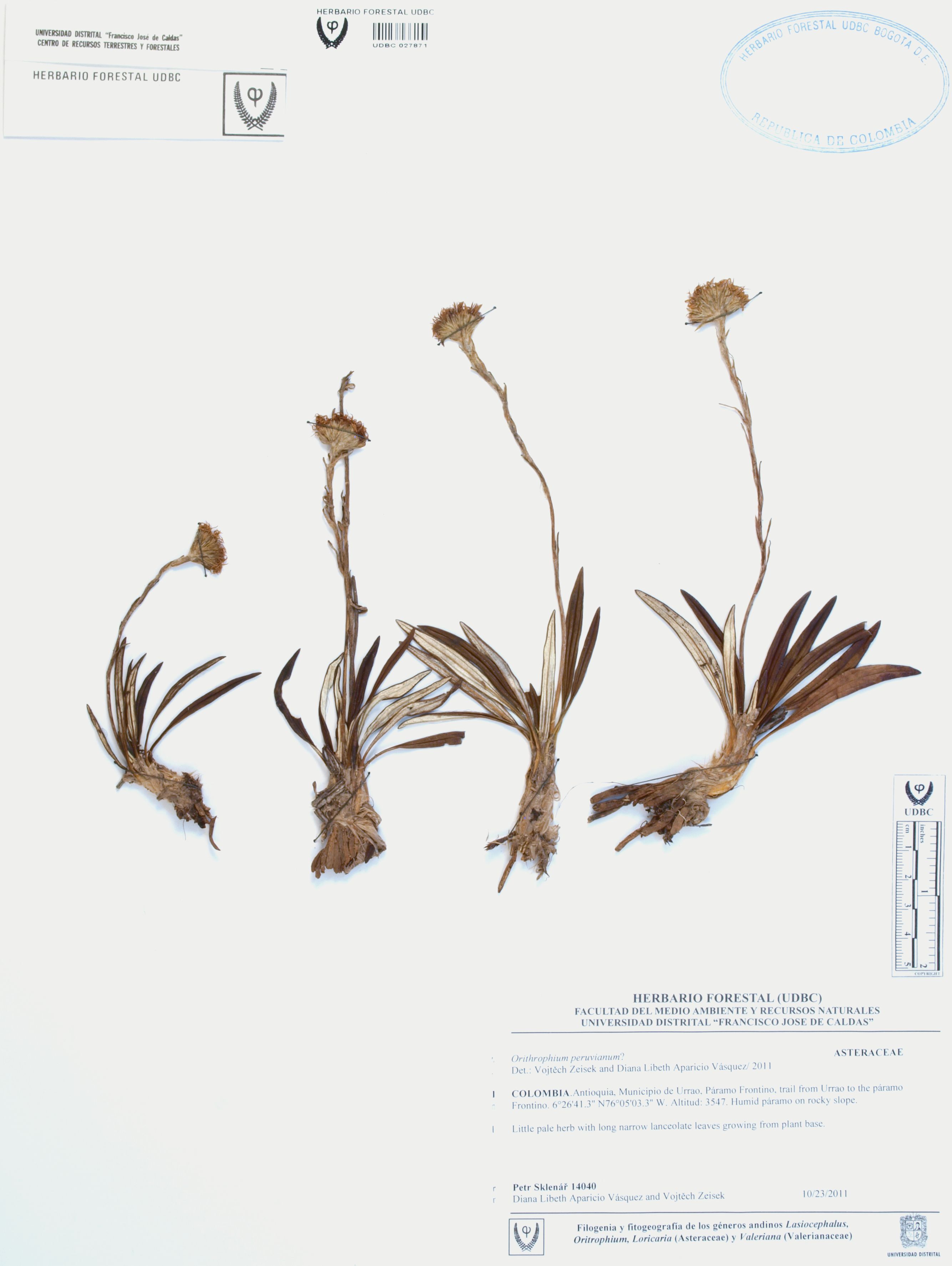 Fotografía del ejemplar Sklenar, P. 14040, determinado como Oritrophium peruvianum en el año 2011