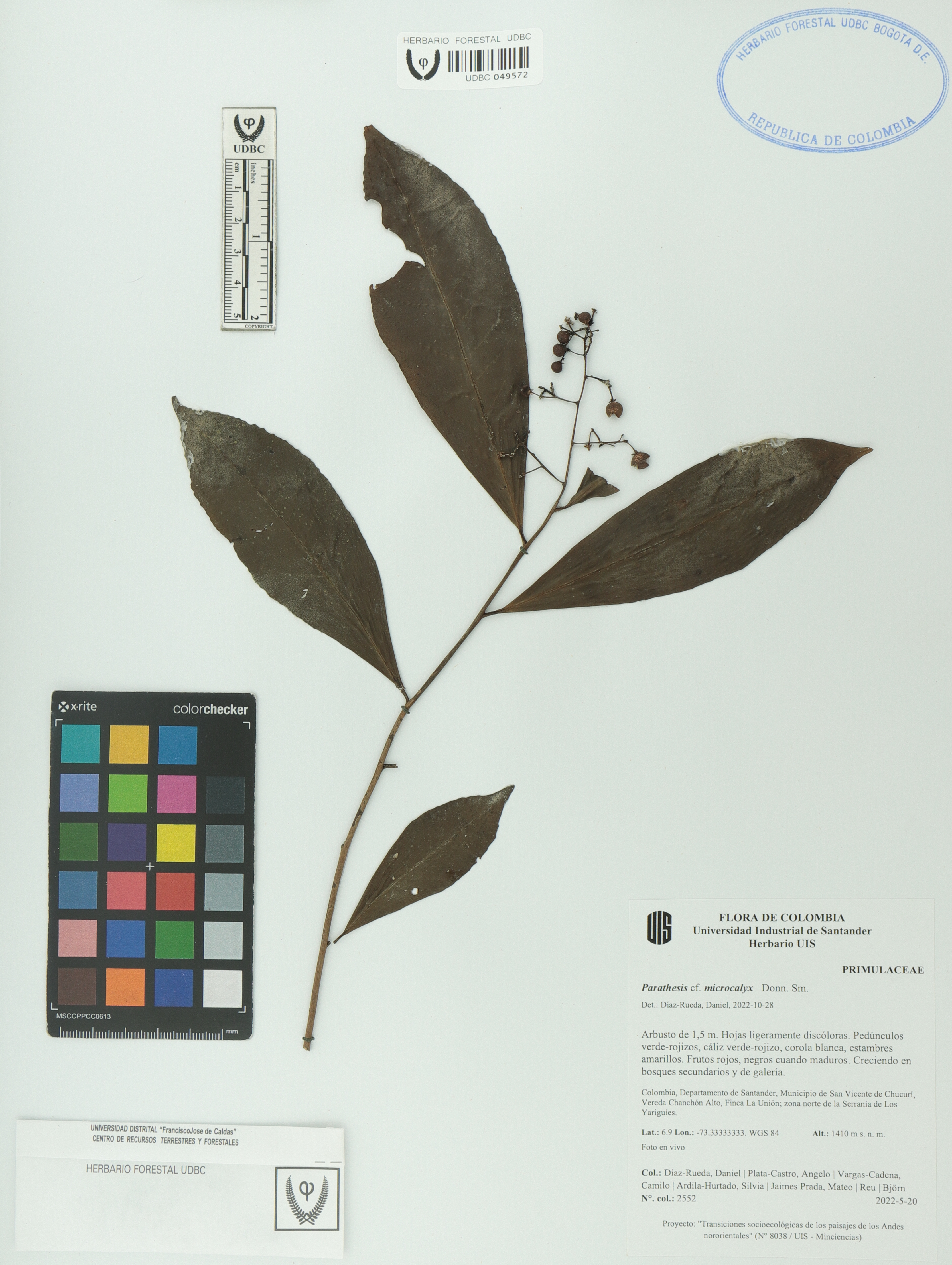 Fotografía del ejemplar Díaz-Rueda, D. 2552, determinado como Parathesis microcalyx en el año 2022
