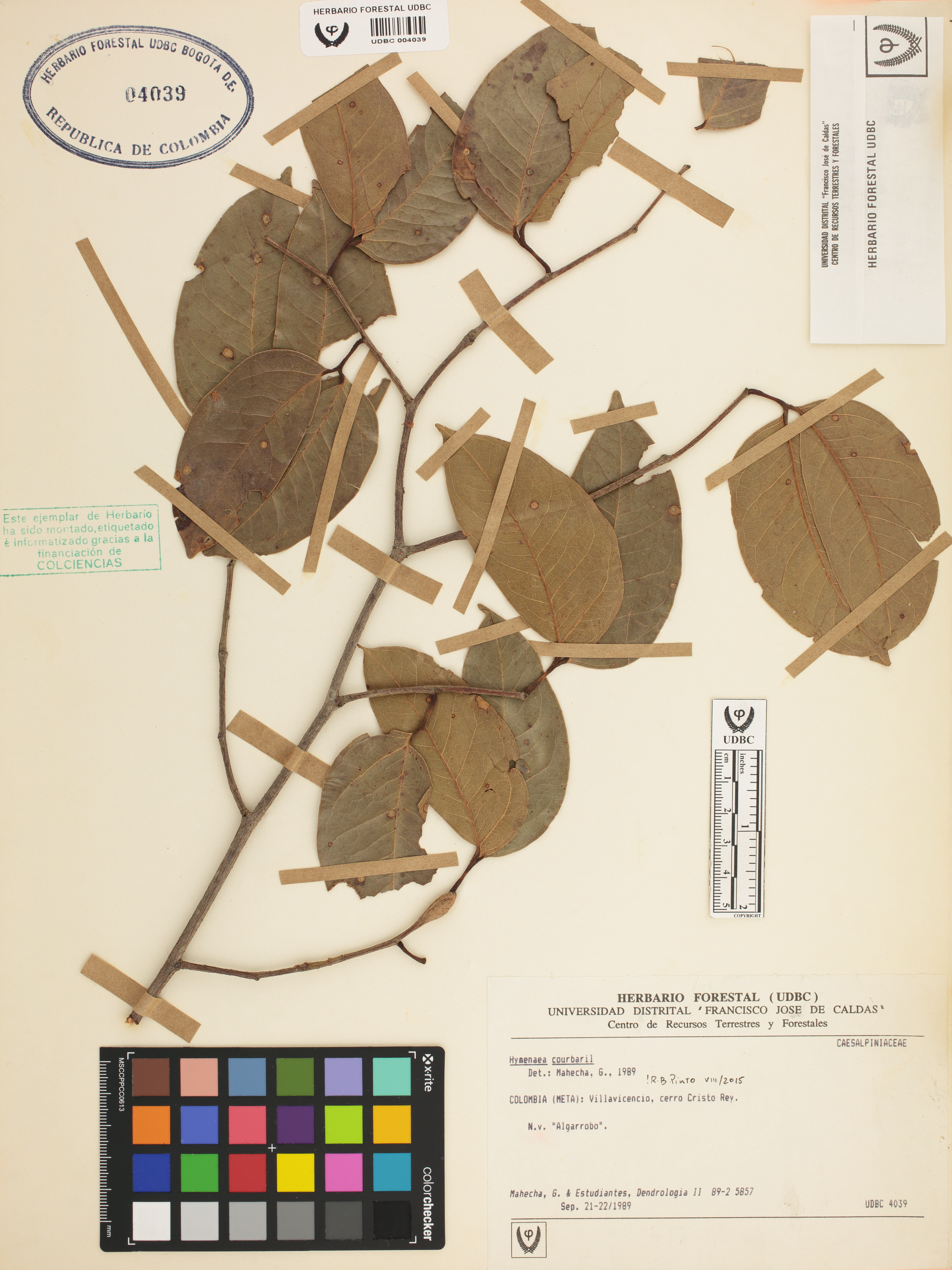 Fotografía del ejemplar Mahecha, G. 5857, determinado como Hymenaea courbaril en el año 1989