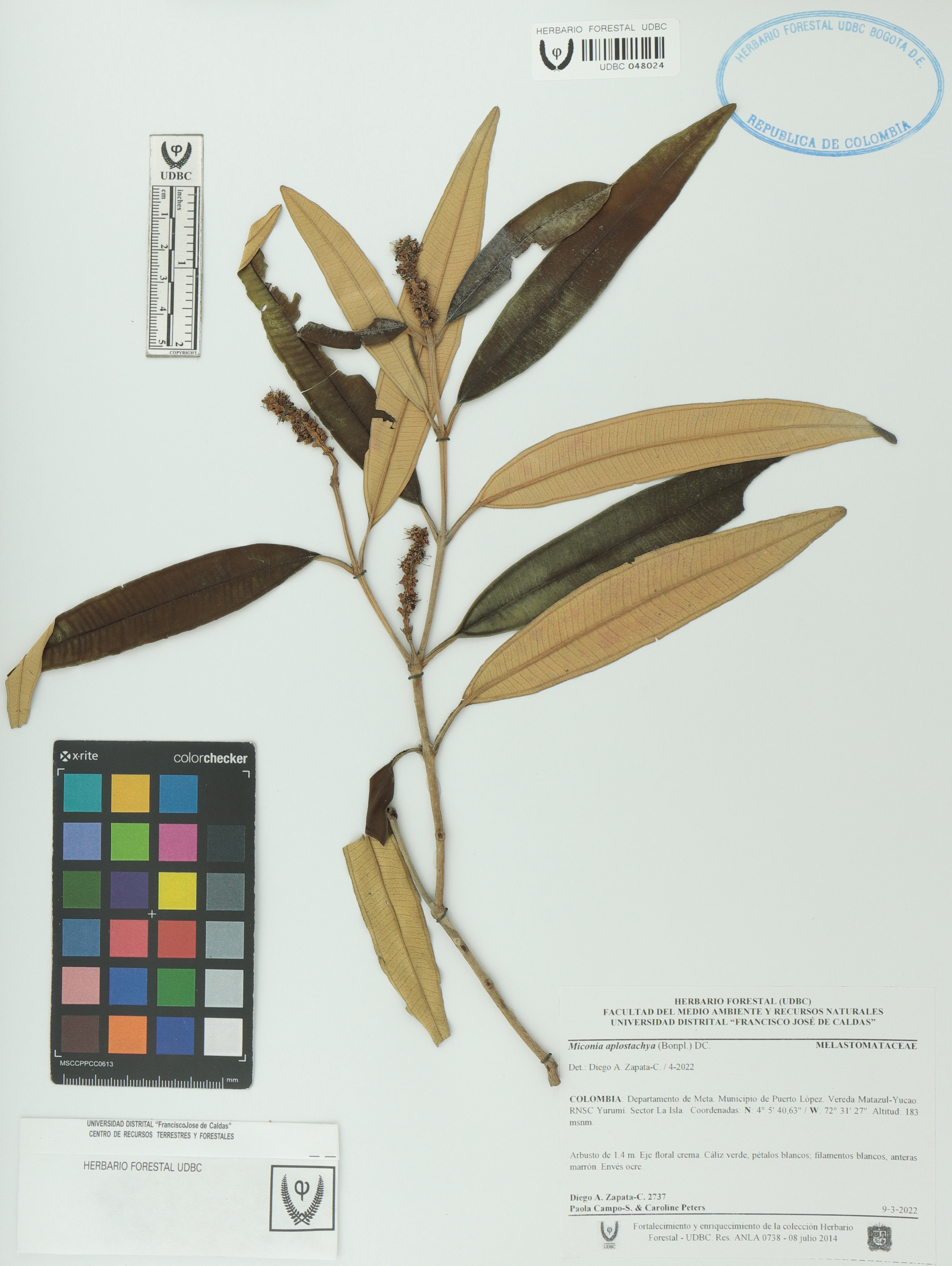 | dc.description | Fotografía del ejemplar Zapata-C., Diego 2737, determinado como Miconia aplostachya en el año 2022 | |