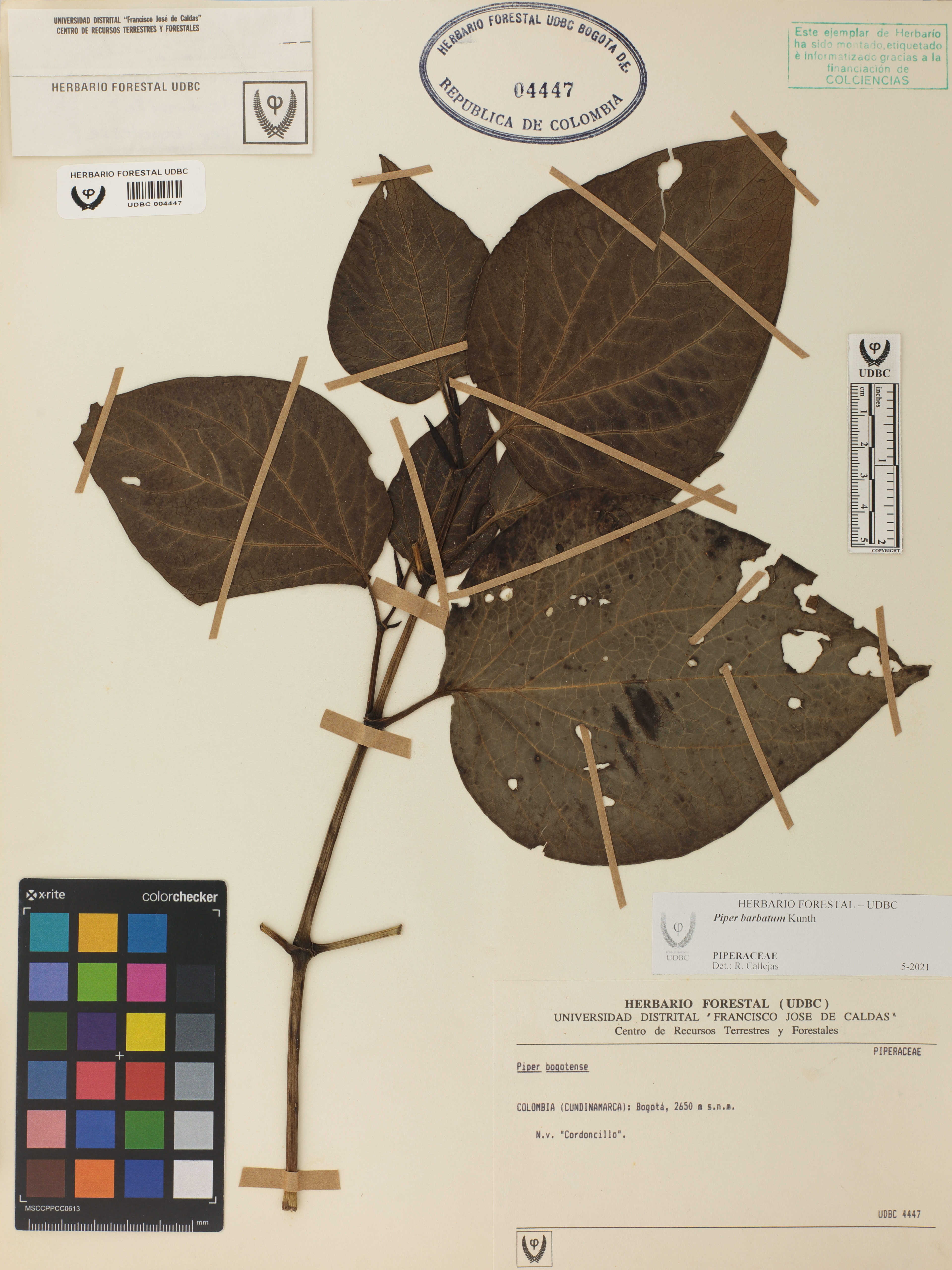 Fotografía del ejemplar SD, determinado como Piper barbatum en el año 2021