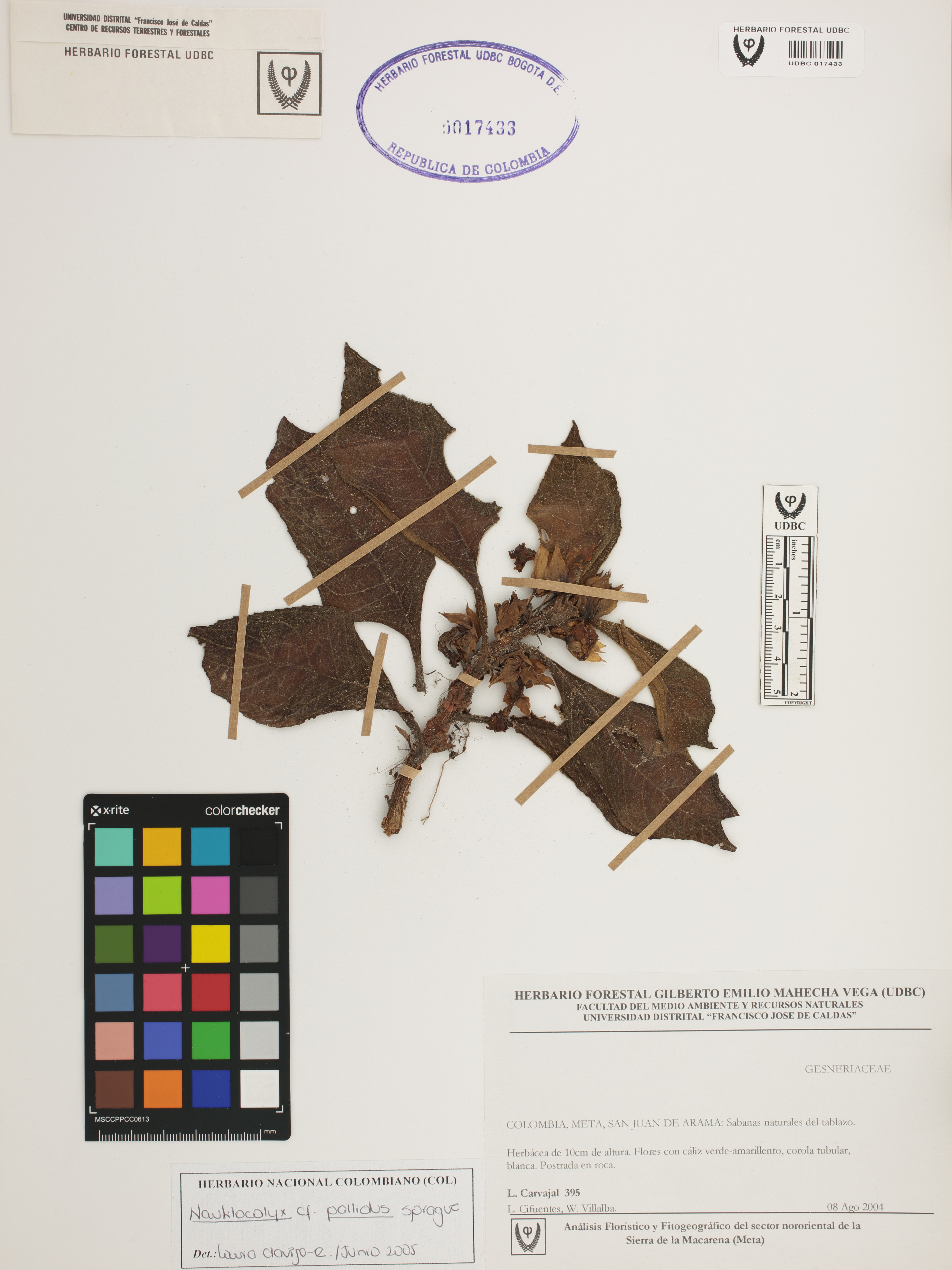 Fotografía del ejemplar Carvajal, L. 395, determinado como Nautilocalyx pallidus en el año 2005