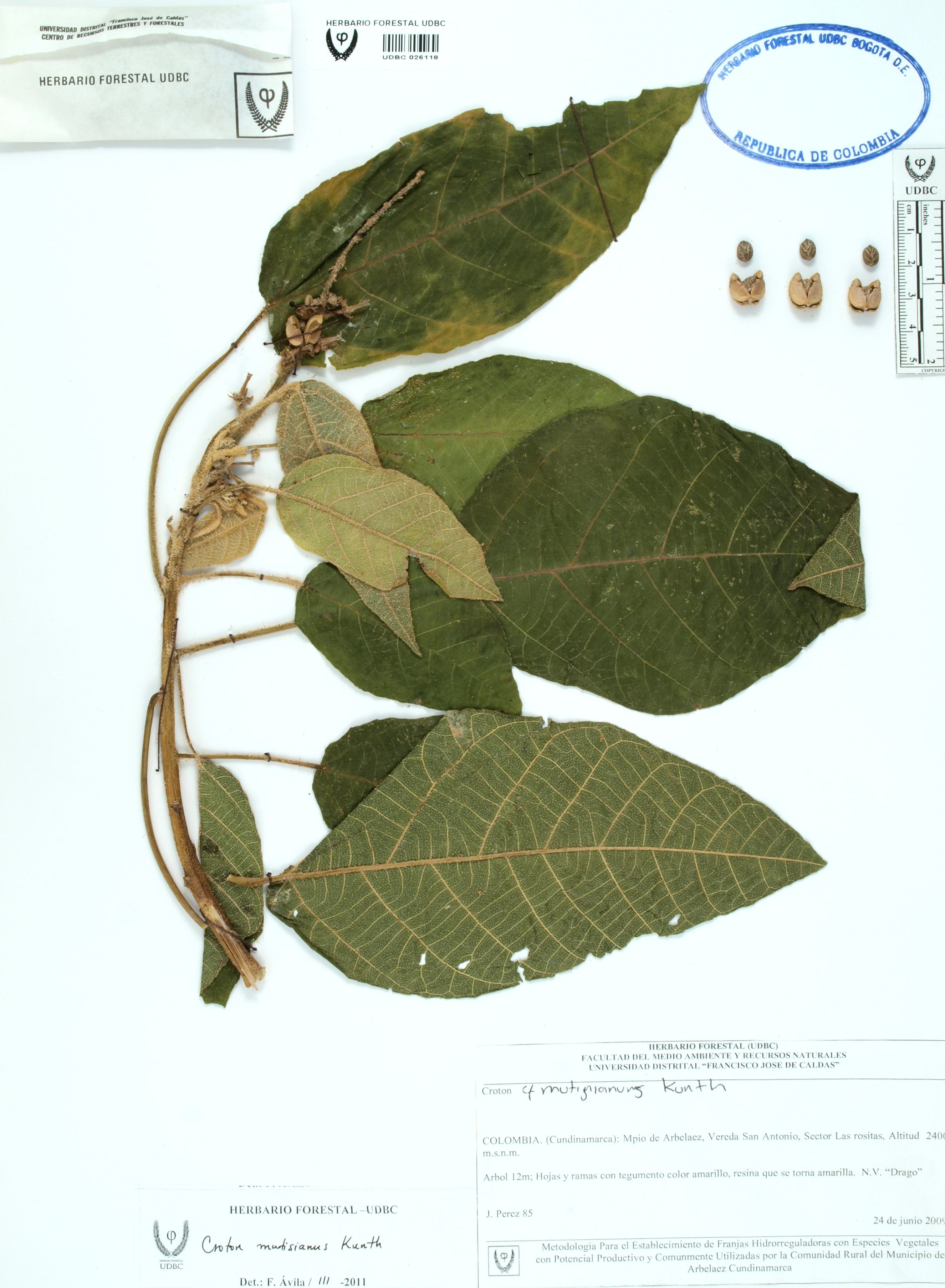 Fotografía del ejemplar Pérez, J. 85, determinado como Croton mutisianus en el año 2011