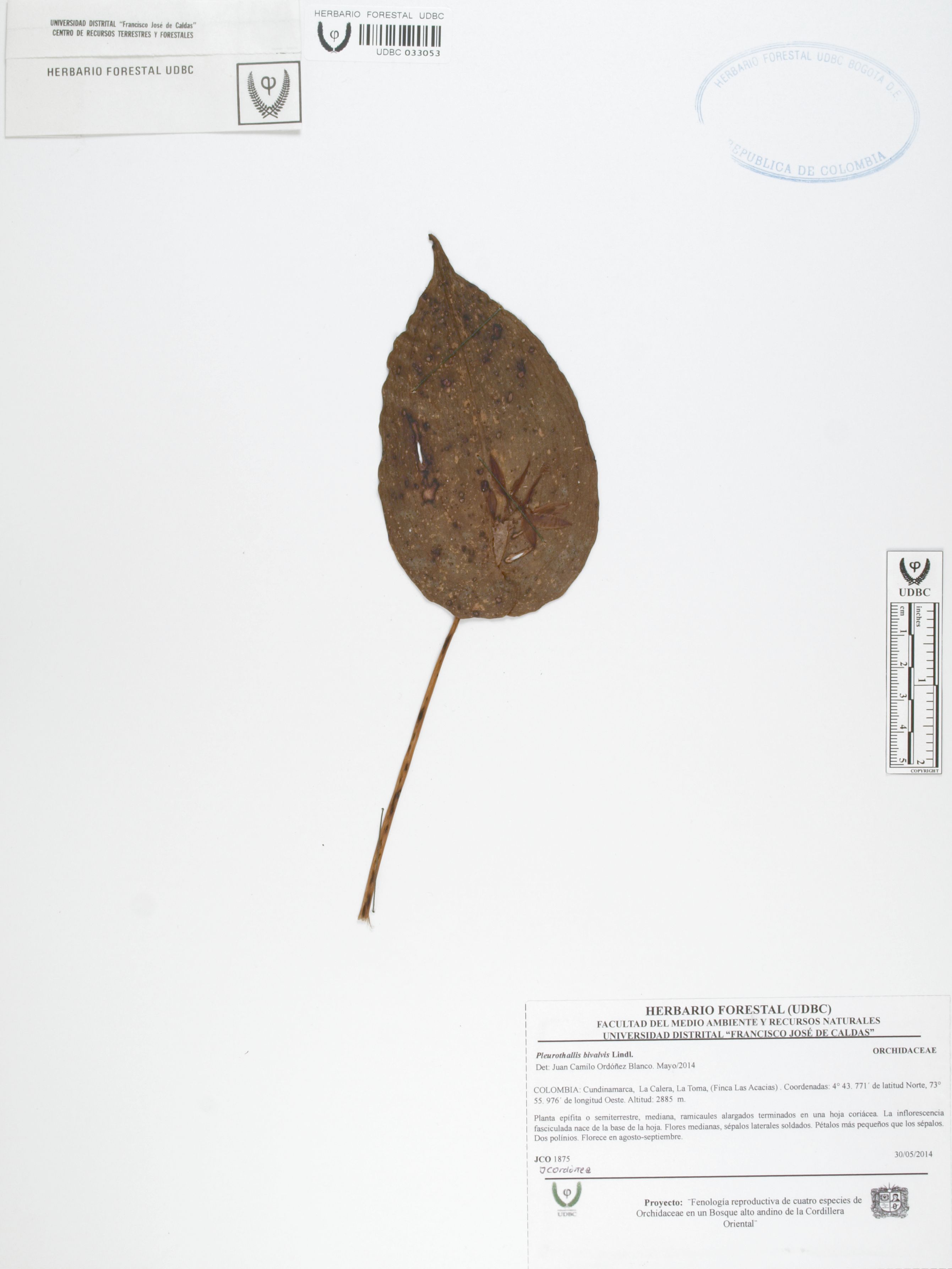 Fotografía del ejemplar Ordóñez, J. 1875, determinado como Pleurothallis bivalvis en el año 2014