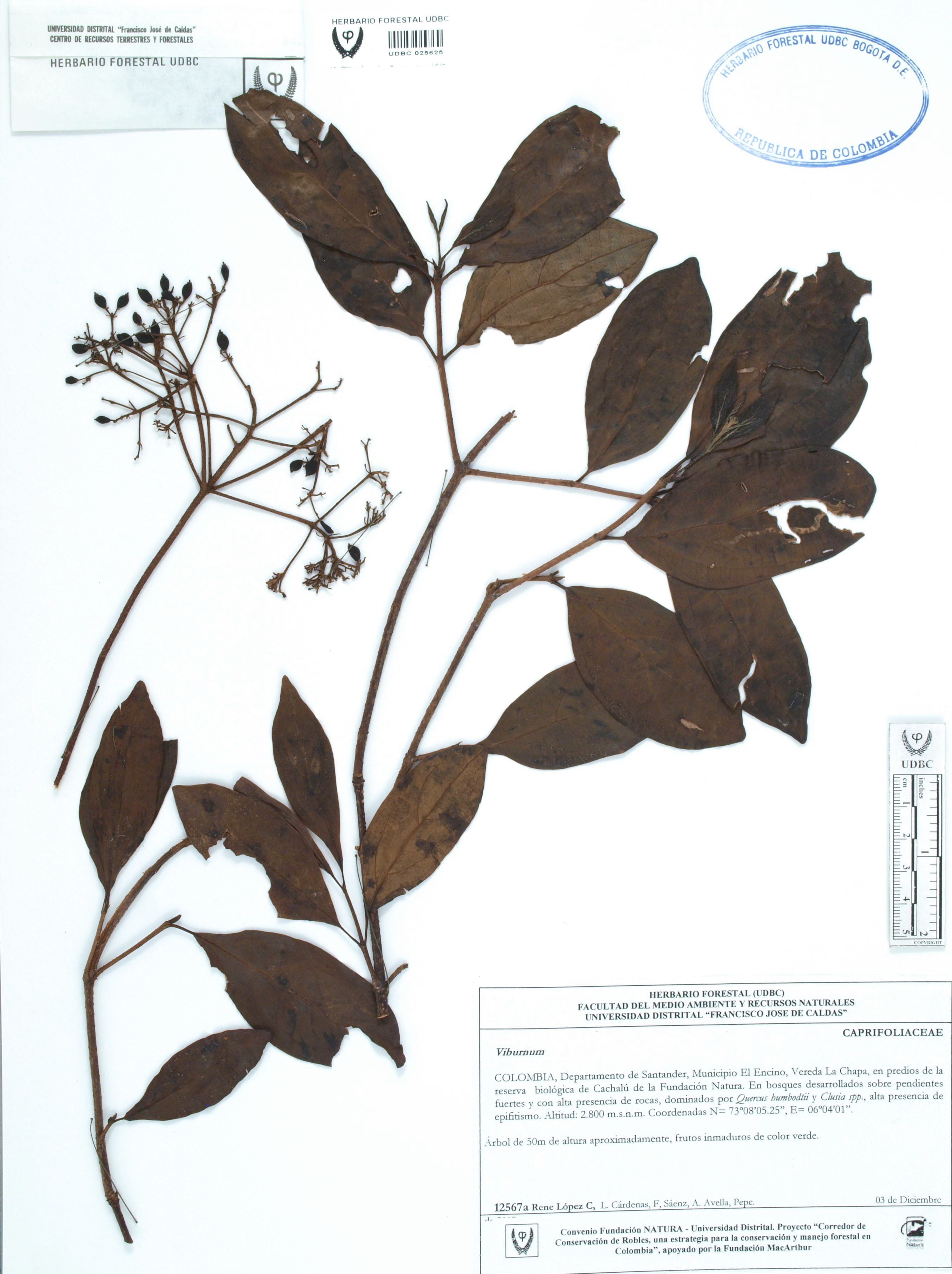 Fotografía del ejemplar López, R. 12567, determinado como Viburnum tinoides en el año 2011