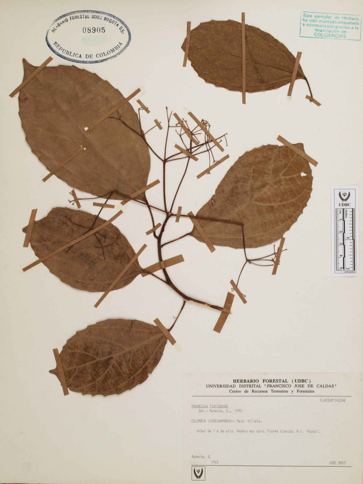 Fotografía del ejemplar Mahecha, G., determinado como Hasseltia floribunda en el año 1990