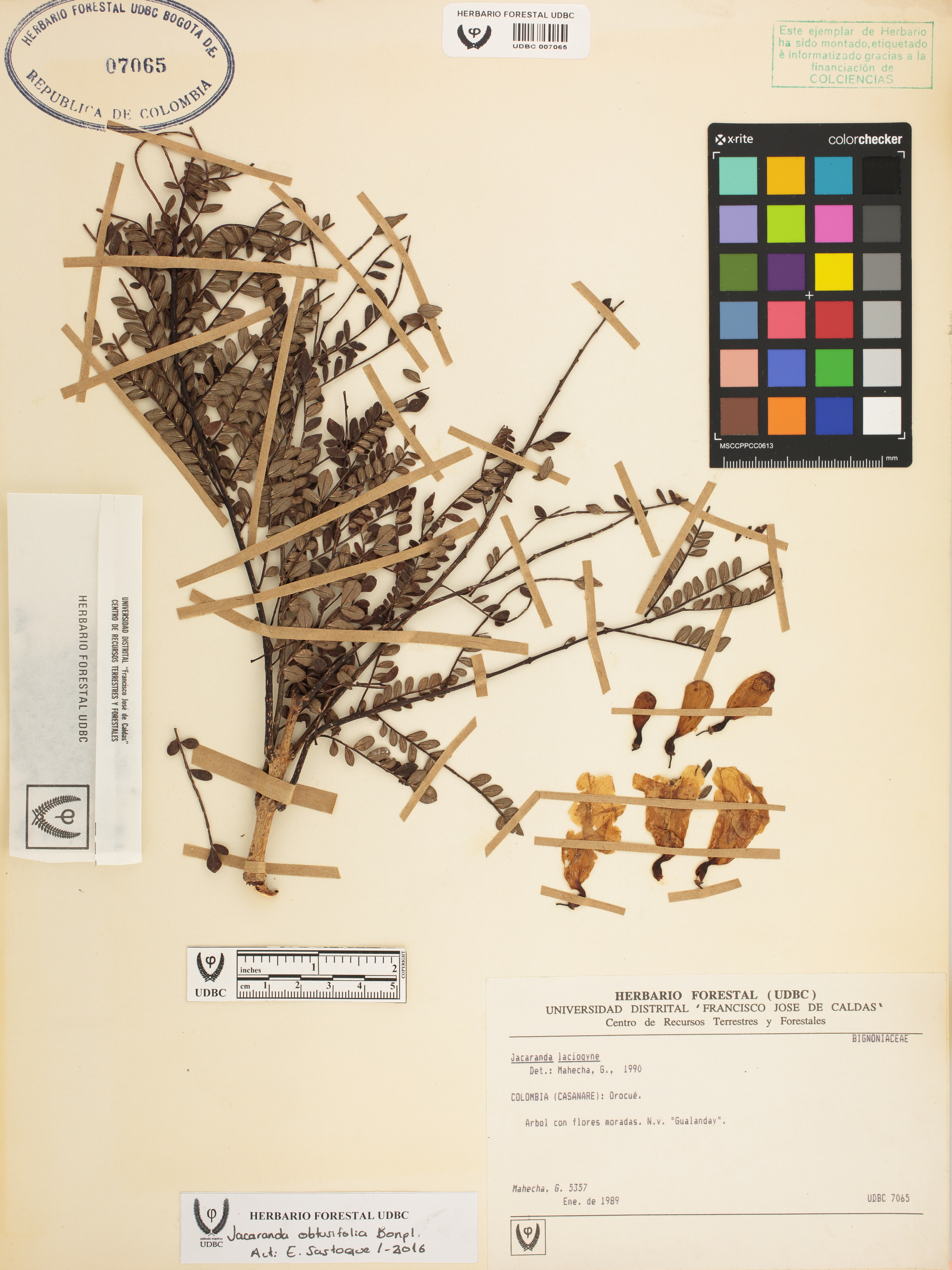 Fotografía del ejemplar Mahecha, G. 5357, determinado como Jacaranda obtusifolia en el año 1990