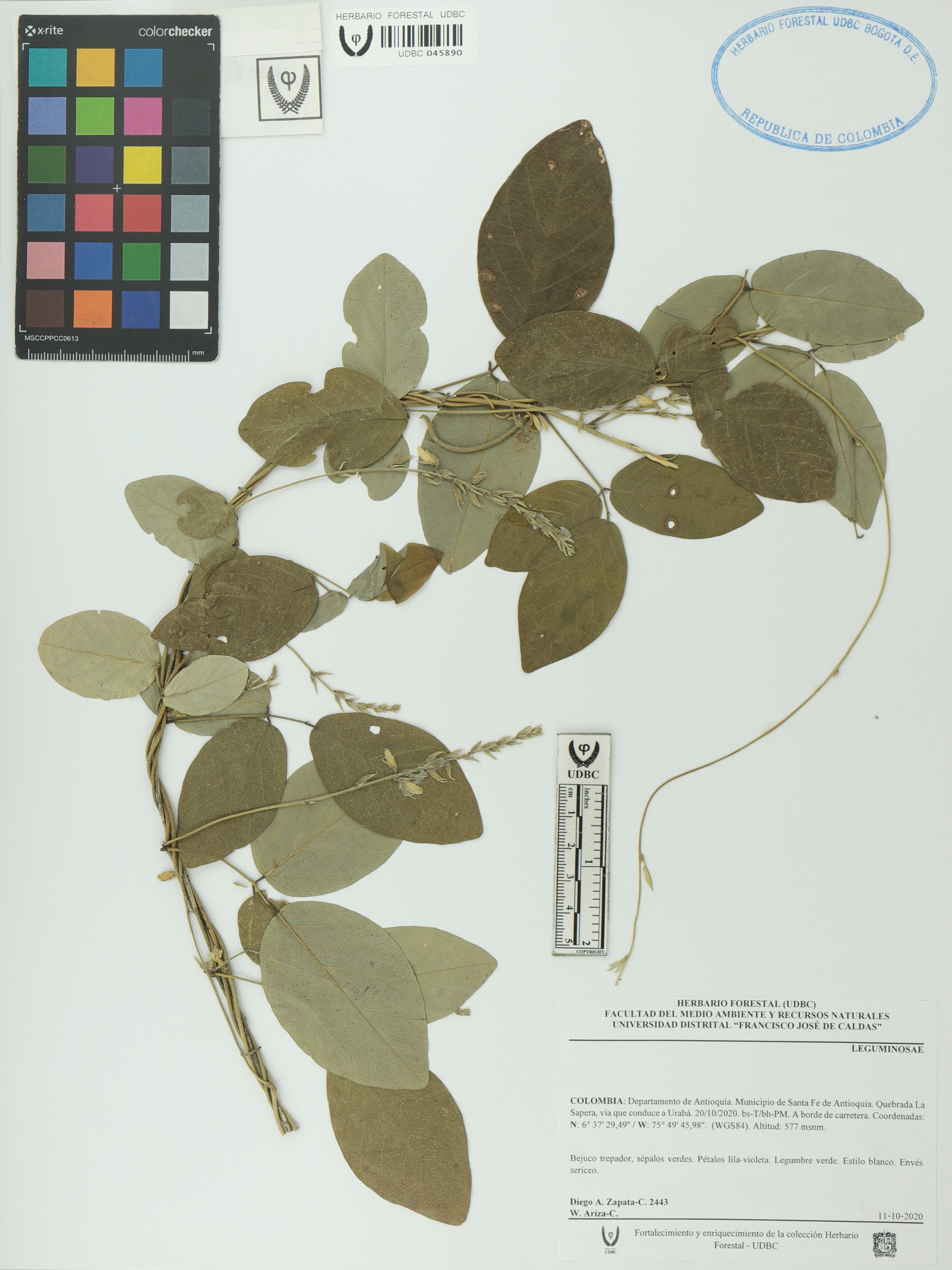 Fotografía del ejemplar Zapata-C., D. 2443, determinado como Fabaceae