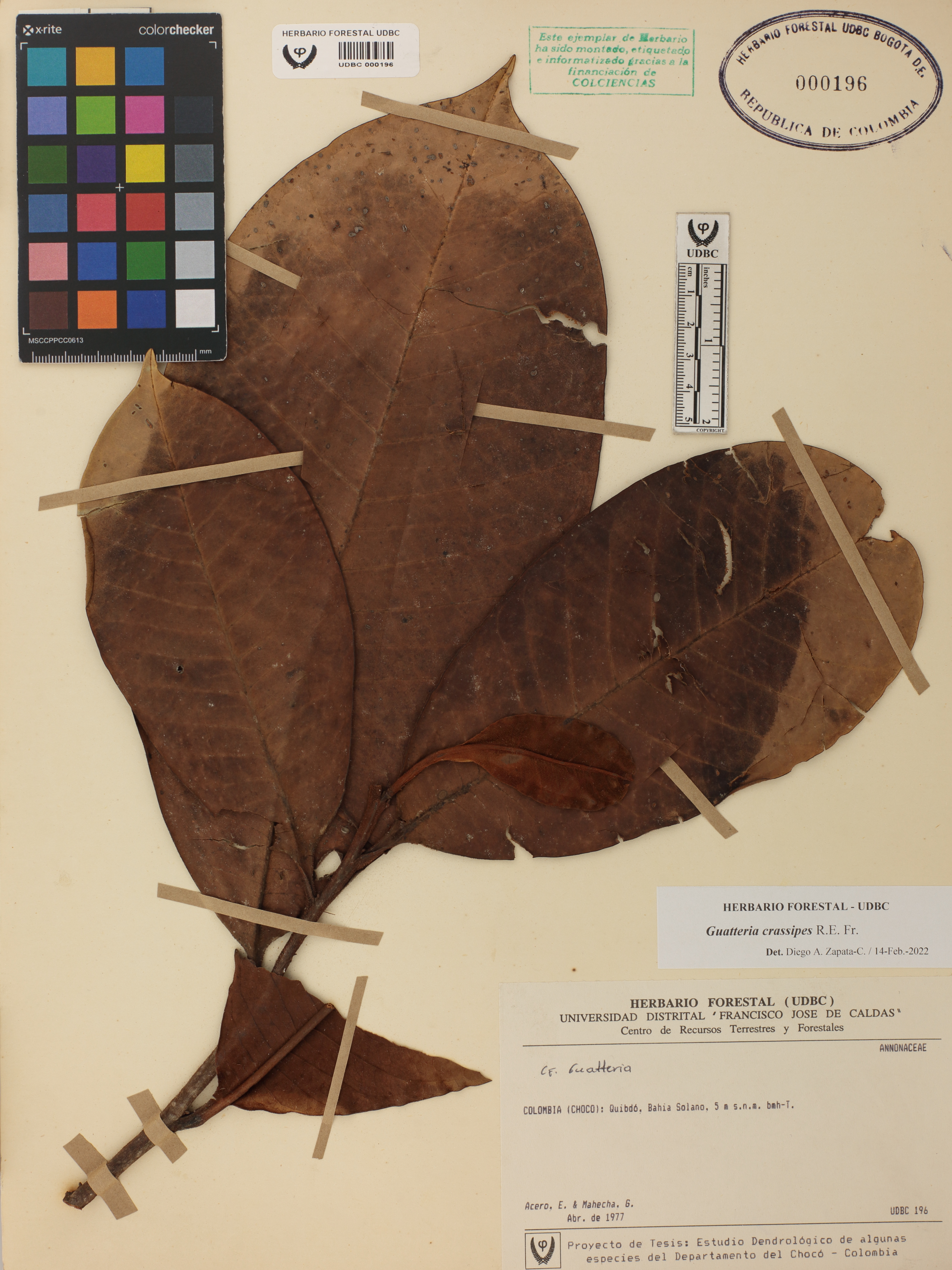 Fotografía del ejemplar Acero, E., determinado como Guatteria crassipes en el año 2022