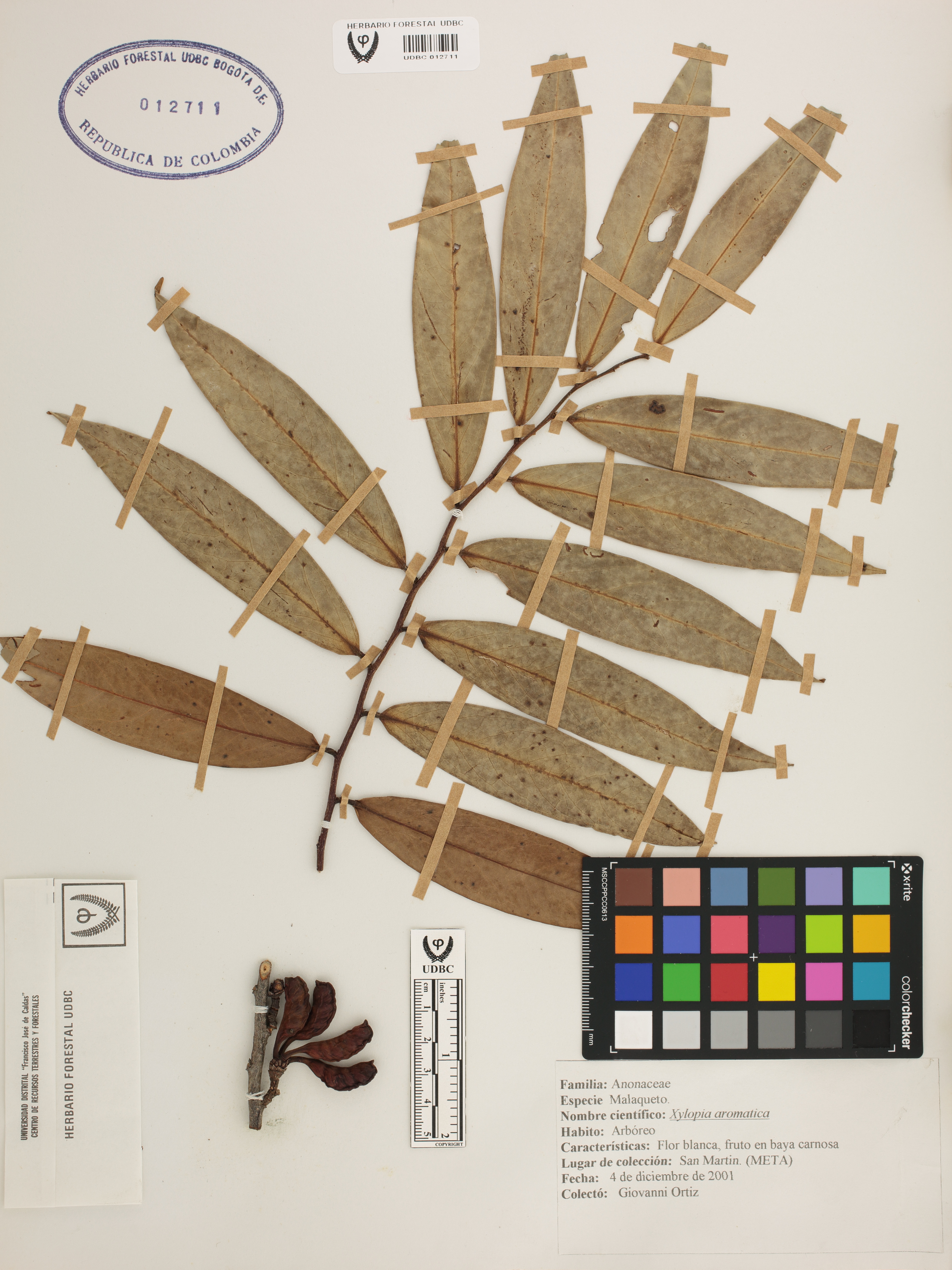 Fotografía del ejemplar Ortiz, G., determinado como Xylopia aromatica