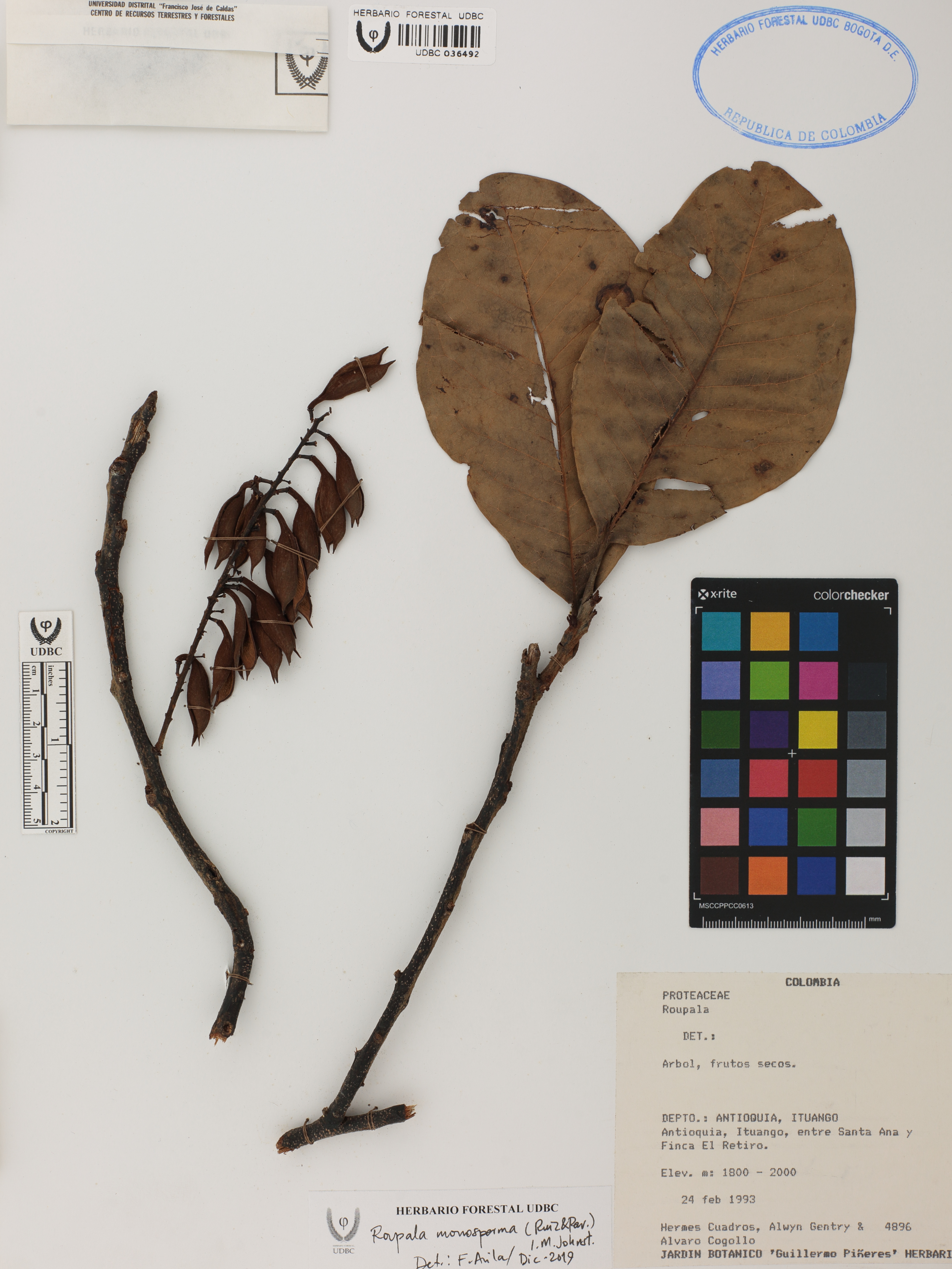 Fotografía del ejemplar Cuadros, H. 4896, determinado como Roupala monosperma en el año 2019