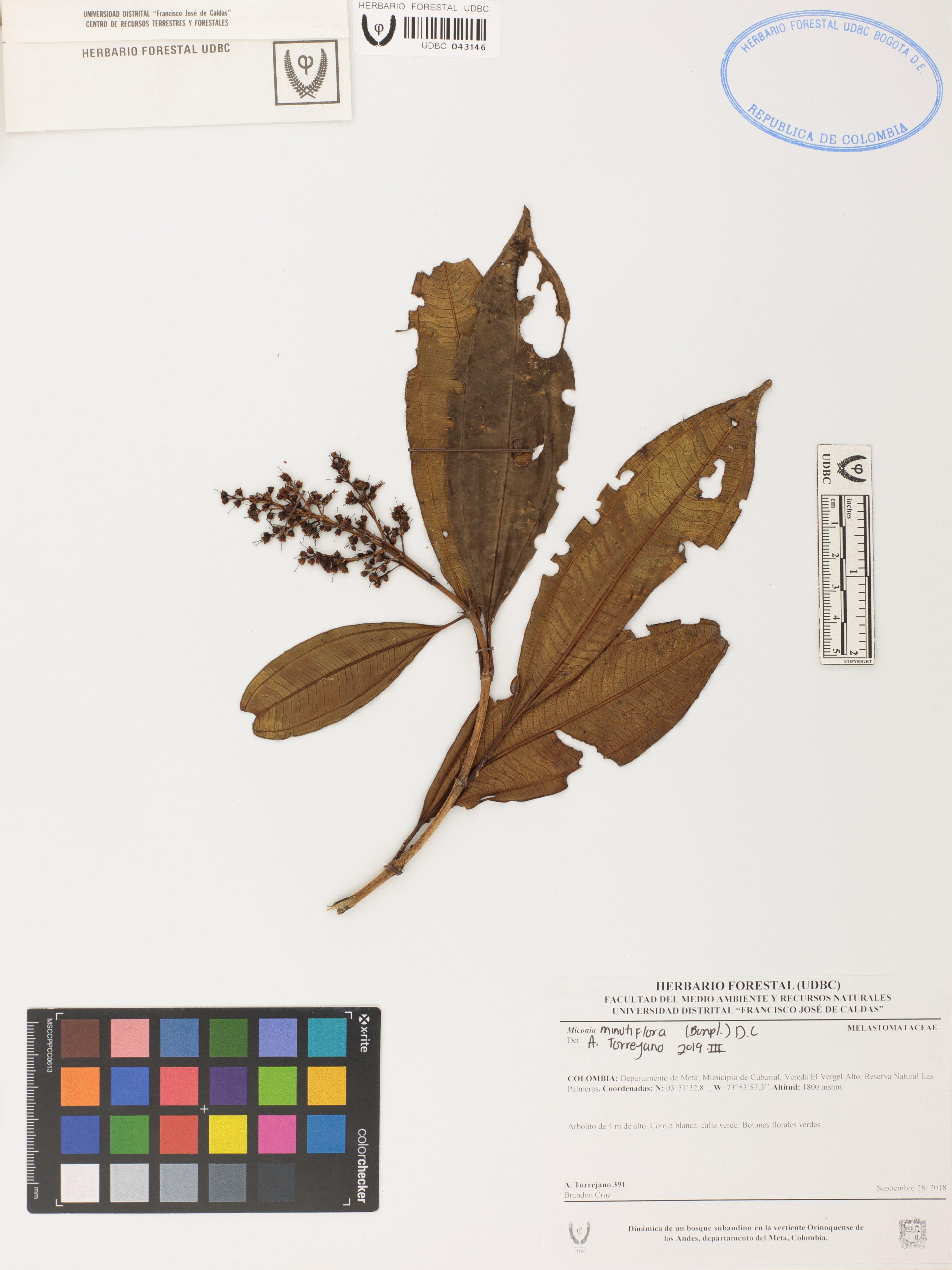 Fotografía del ejemplar Torrejano, A. 391, determinado como Miconia minutiflora en el año 2019