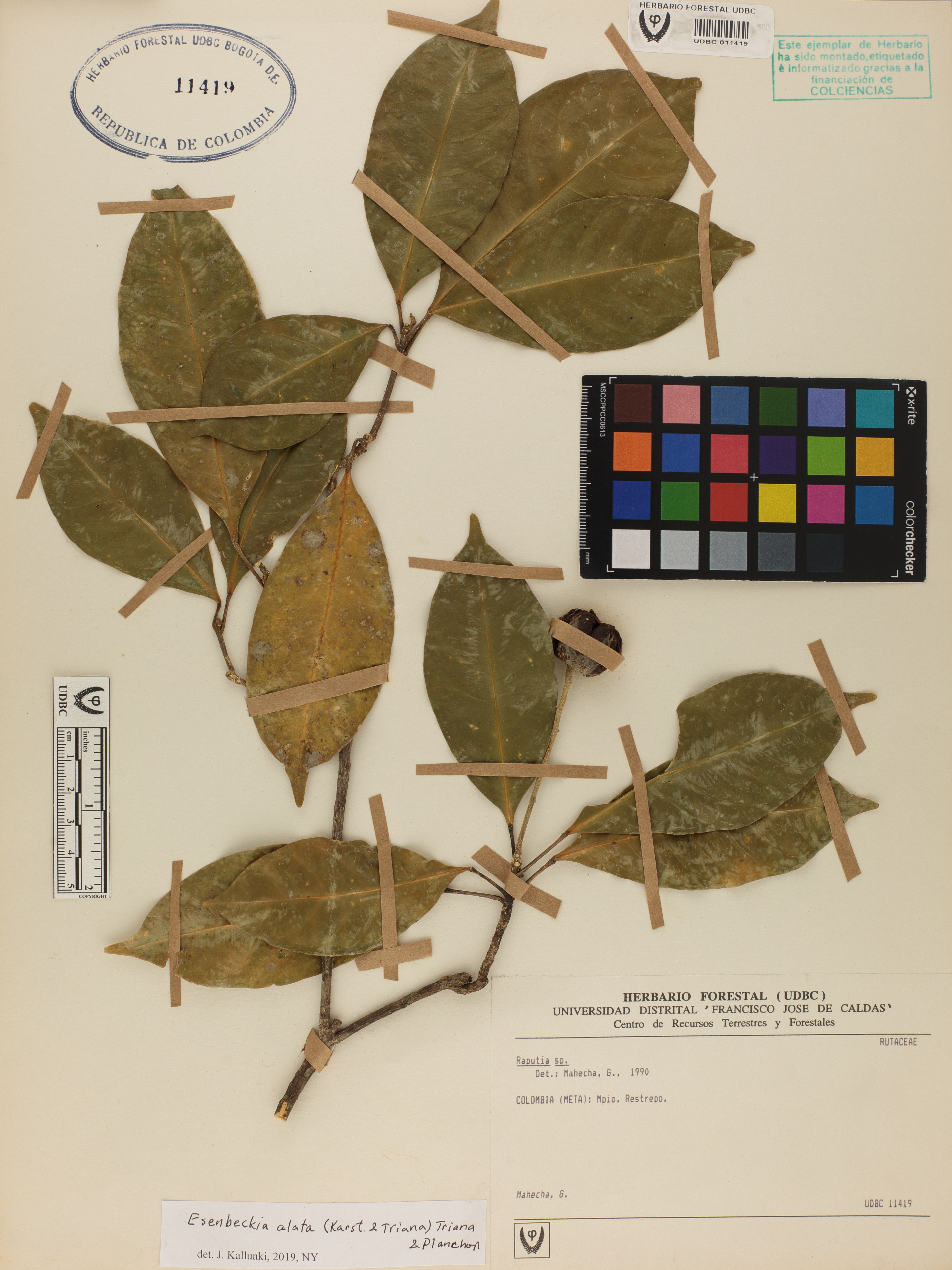 Fotografía del ejemplar Mahecha, G., determinado como Esenbeckia alata en el año 2019