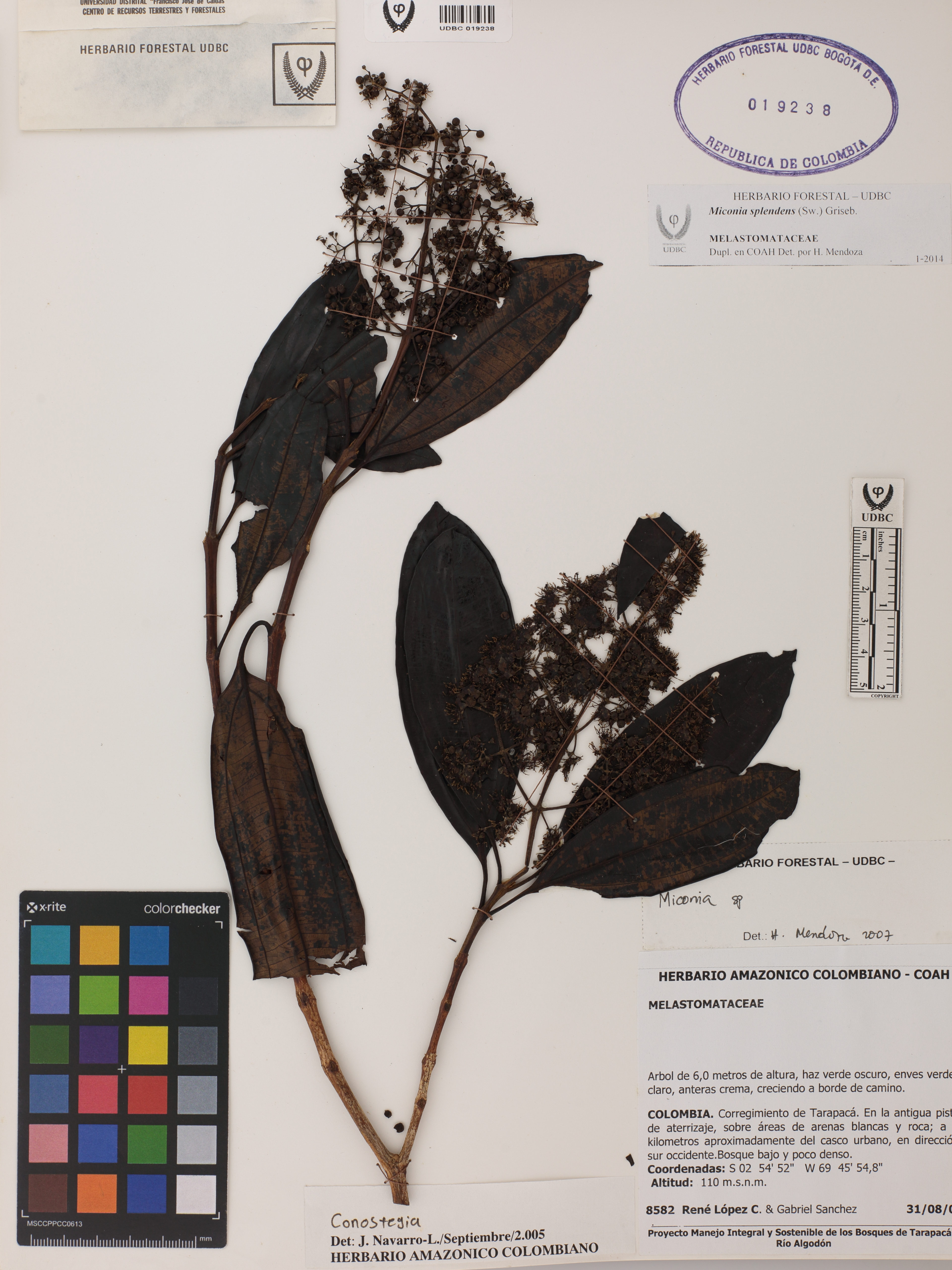 Fotografía del ejemplar López, R. 8582, determinado como Miconia splendens en el año 2014