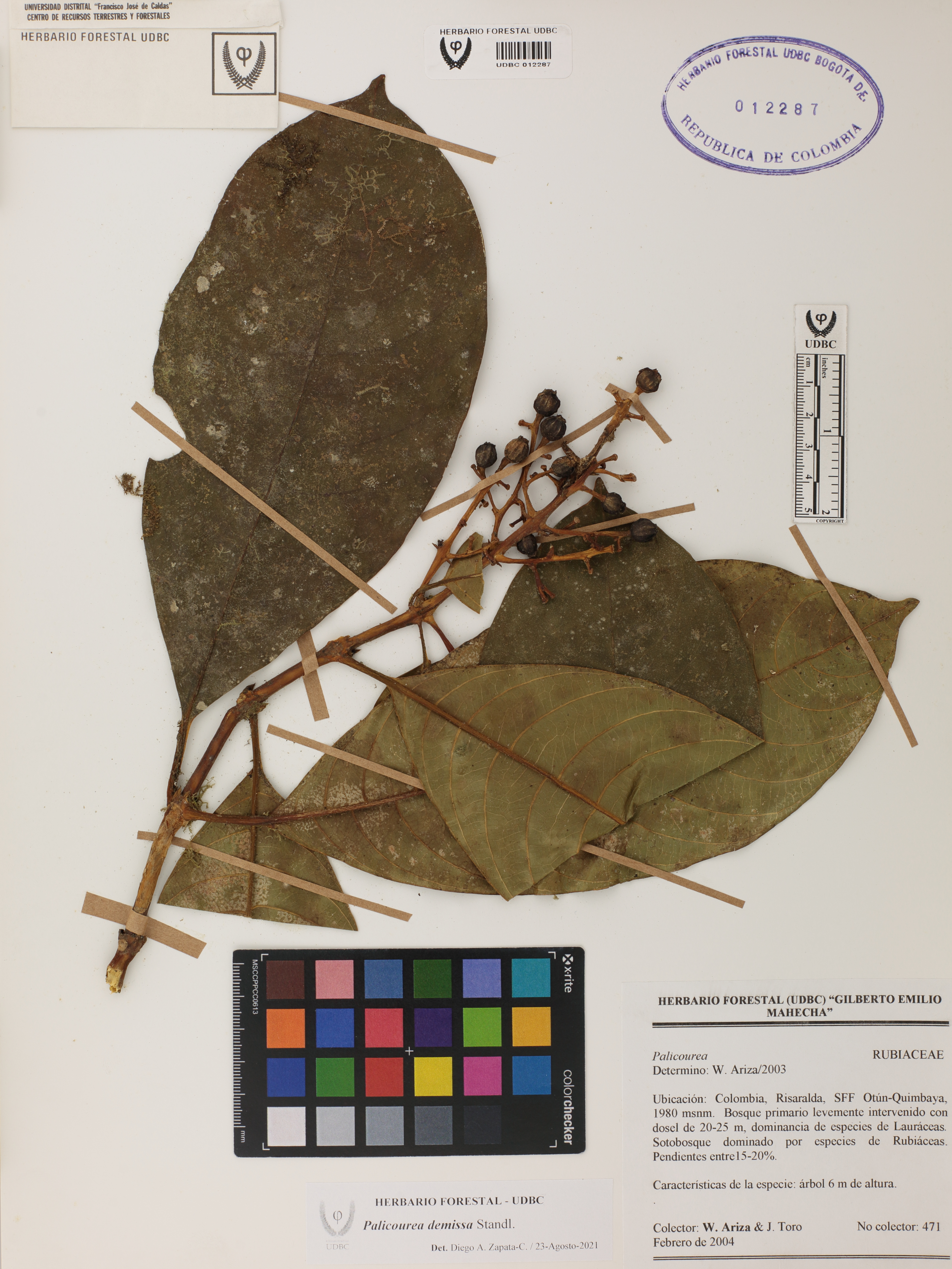 Fotografía del ejemplar Ariza, W. 471, determinado como Palicourea demissa en el año 2021