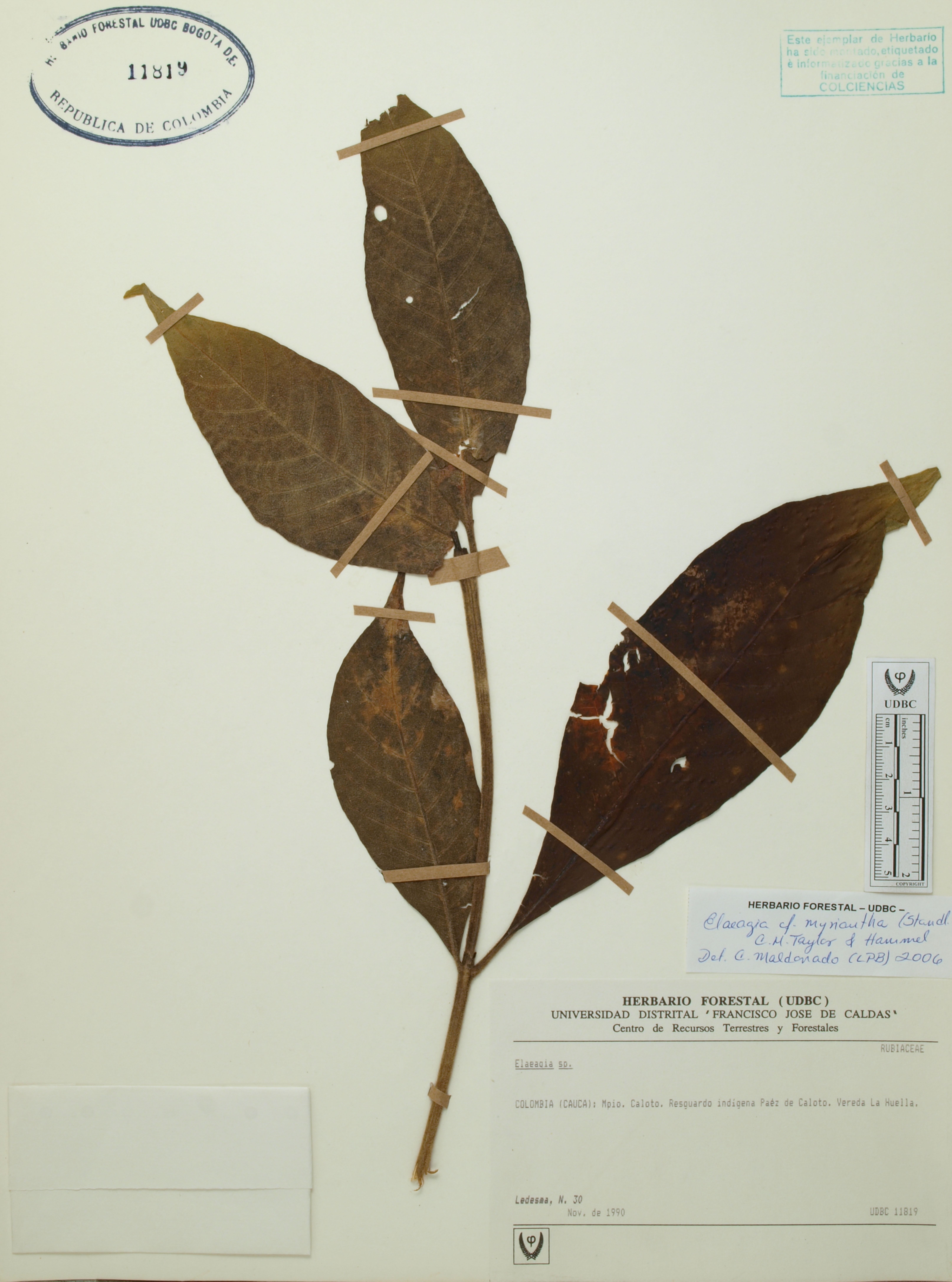 Fotografía del ejemplar Ledesma, M. 30, determinado como Elaeagia myriantha en el año 2006
