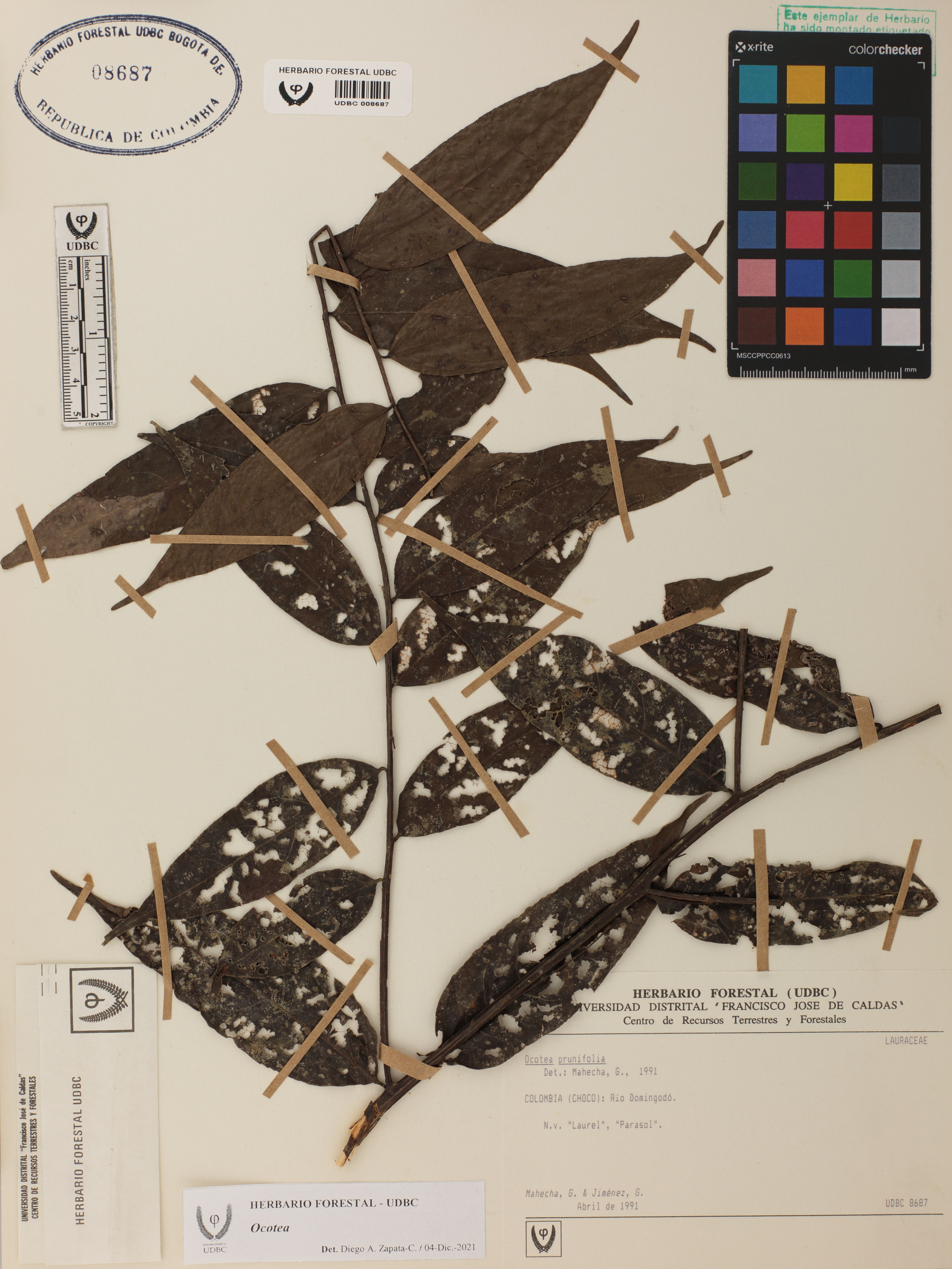 Fotografía del ejemplar Mahecha, G., determinado como Ocotea sp. en el año 2021