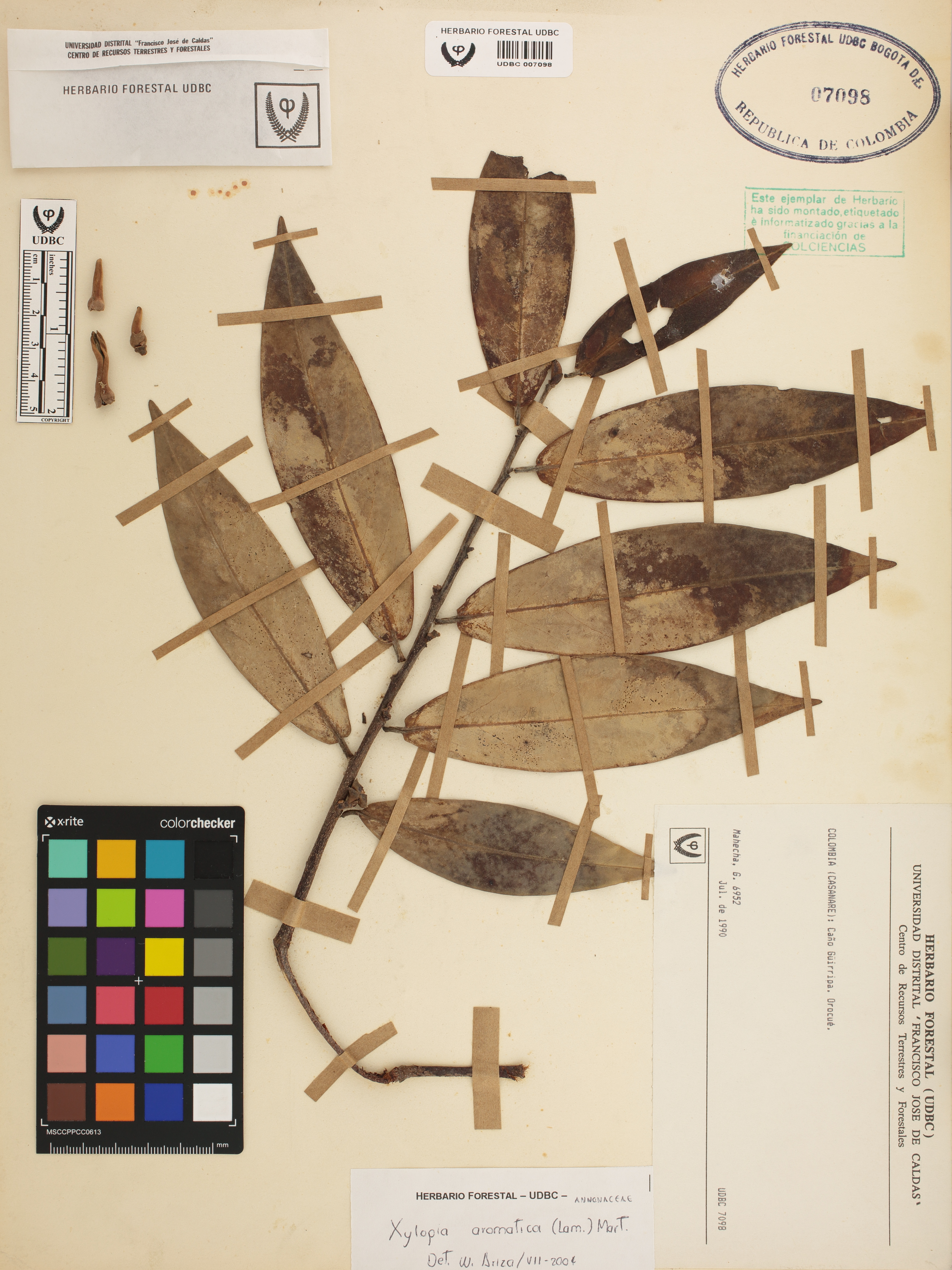 | dc.description | Fotografía del ejemplar Mahecha, G. 6952, determinado como Xylopia aromatica en el año 2004 | |